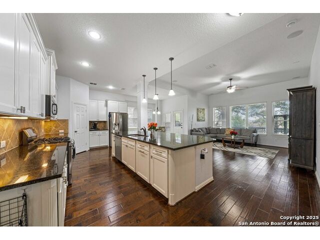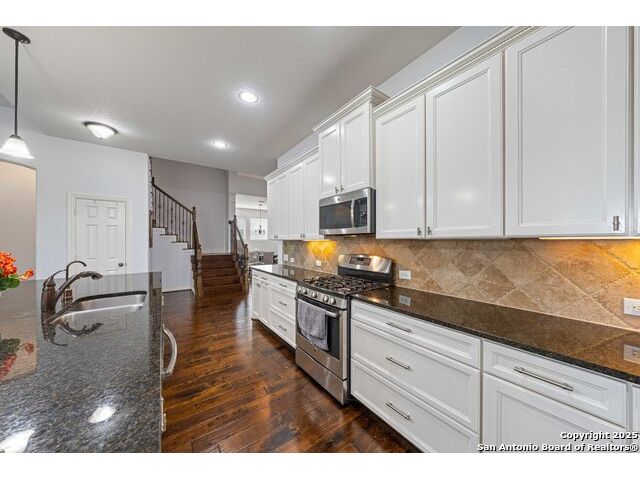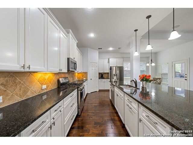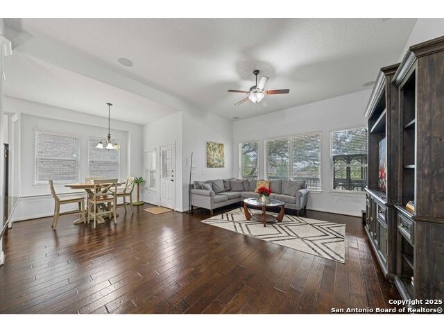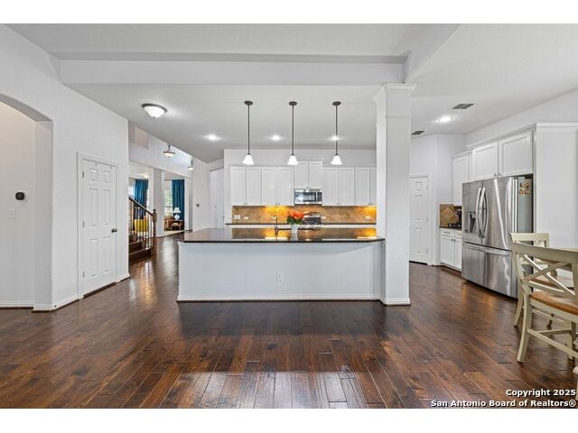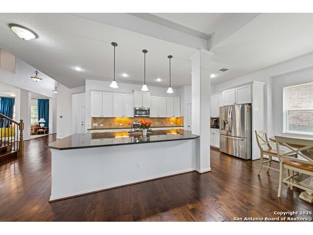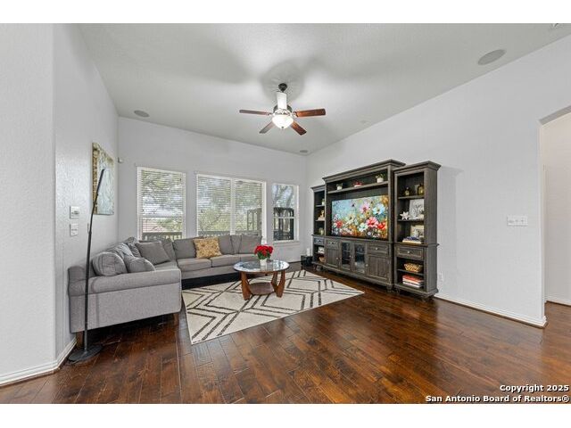 Step into sophistication and comfort in this stunning 4-bedroom, 3.5-bath David Weekley home boasting 3,163 sq ft of beautifully designed living space. From the moment you enter, you'll be greeted by soaring ceilings, rich wood flooring, and walls of windows that flood the home with natural light and warmth. The open-concept floor plan flows effortlessly-perfect for both entertaining and everyday living. The chef's kitchen features white cabinetry with sleek hardware, granite countertops, and a large island that opens to the dining and family room, creating the ultimate gathering space. Art niches and architectural details add charm and sophistication throughout. Upstairs, you'll find a spacious game room/loft and a dedicated media room-ideal for movie nights or family fun. The primary suite, which is on the first floor, offers a peaceful retreat with a spa-like bath and generous closet space, while the secondary bedrooms are thoughtfully designed for comfort and privacy. With a three-car garage, high-end finishes, and a design that balances style and function, this home truly stands out. Located in a highly desirable community known for its scenic surroundings and top-rated schools, 28914 Diana Falls is more than a home-it's a lifestyle.