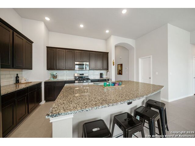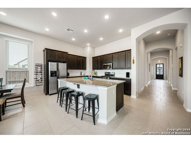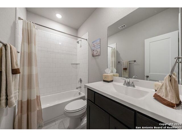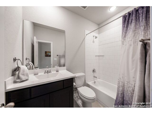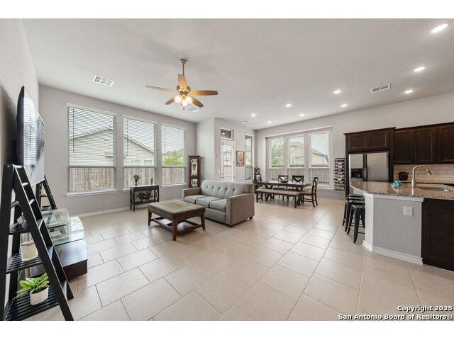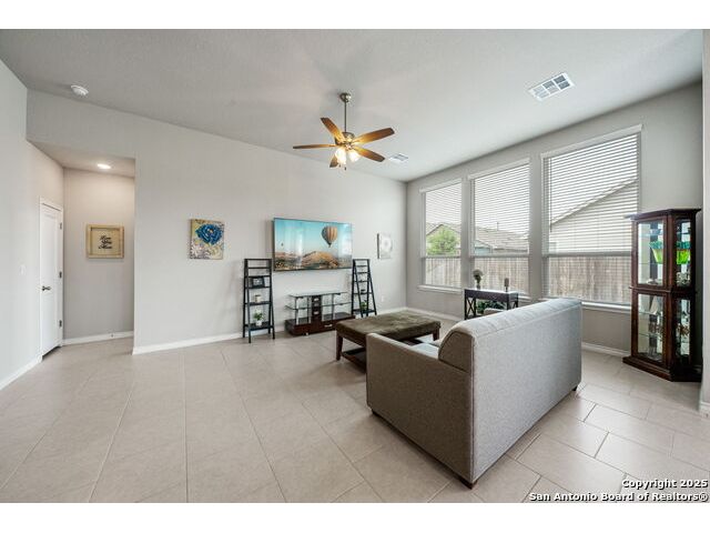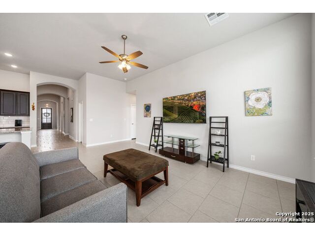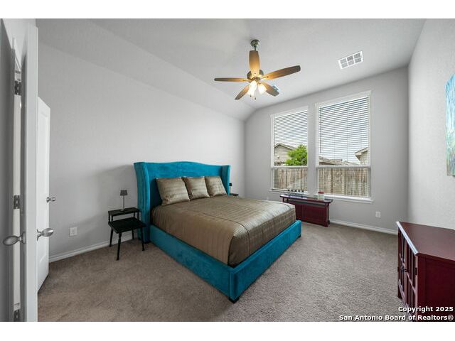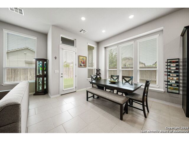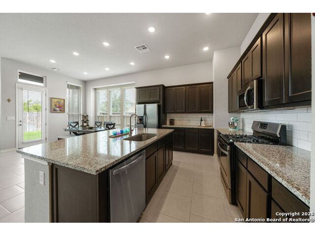 Better than new and move-in ready, this Highland Home on a corner lot in the vibrant Vida community offers exceptional quality and style. Lightly lived in and meticulously maintained. Step inside to find an open layout with soaring ceilings, tile flooring throughout the main living areas, and carpet only in the bedrooms. The kitchen is designed to impress with gas cooking, custom cabinetry, granite countertops, and a large island perfect for entertaining. A tankless water heater adds to the home's energy efficiency and modern convenience. Vida is more than a neighborhood-it's a community built around walkability, culture, and connection. Just minutes from downtown San Antonio, it's where modern convenience meets creative, connected living.