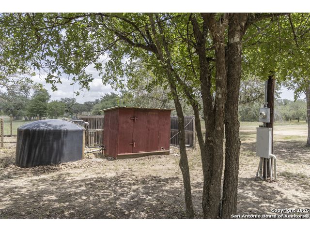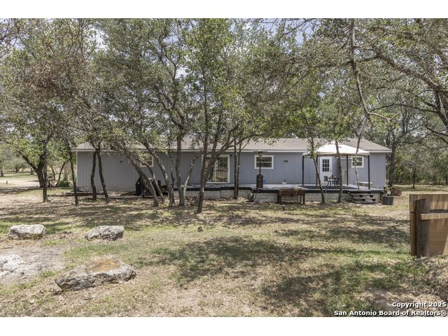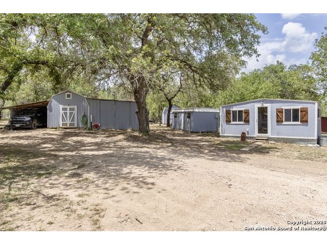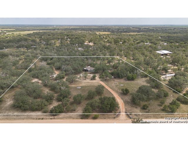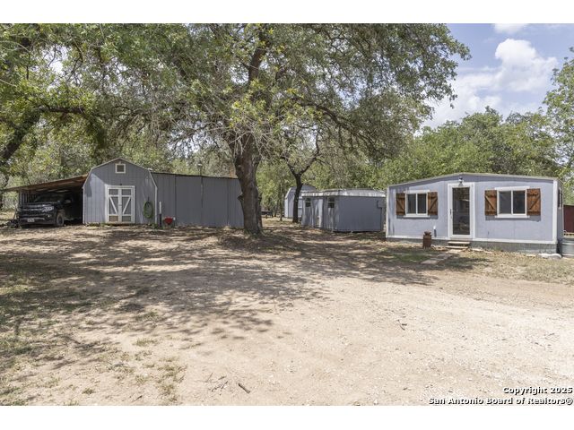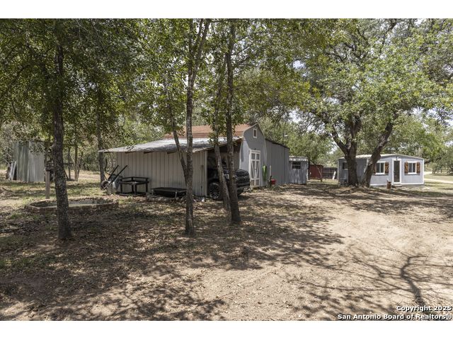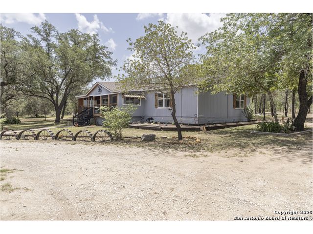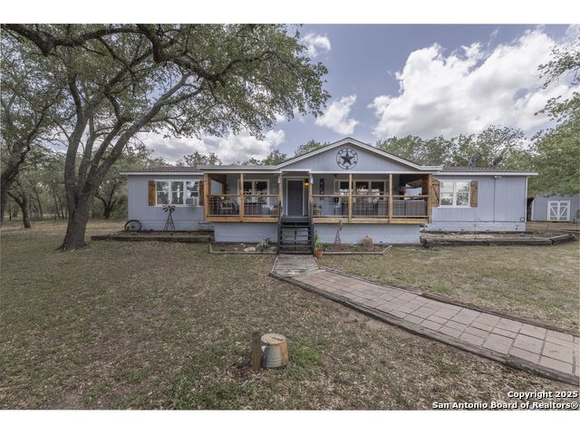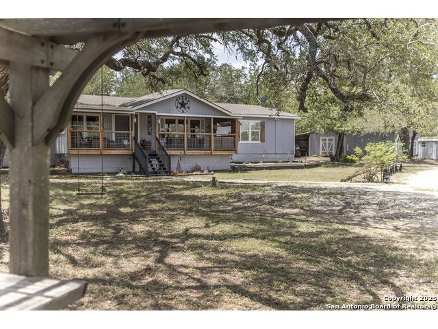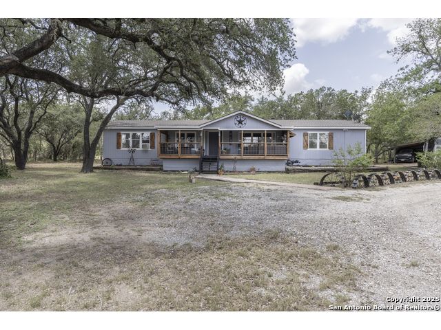 Stop scrolling- this 10-acre retreat has it all. Updated 3 bedroom, 2 bath home. Gated entry. Circle drive. Sprawling oak trees and wide-open skies. From the moment you arrive, it feels less like a house and more like a lifestyle. Inside, the home is warm and inviting with modern finishes. Open living and dining. Large kitchen. A second living room or office. Comfortable bedrooms with plenty of storage. The enclosed front porch, wrapped in wood, adds charm and extra living/entertaining space. Out back, an oversized deck overlooks a fire pit with stone seating, koi pond and target practice ranges, and around the corner is your fenced garden with raised beds. Outbuildings include a powered workshop/barn with covered parking, storage shed with loft, bird coop, and two climate-controlled buildings for hobbies, guests, or a home business. There's also a full slab ready for your second home, garage, or entertaining area. The setting here is unforgettable- towering oaks shade a pergola and swing, giving the land a private park feel. Just off 281-S near 1604, commuting is easy. Even better, the tax rate is only 1.49%. This is true country living, close to the city, ready for you to make it your own.