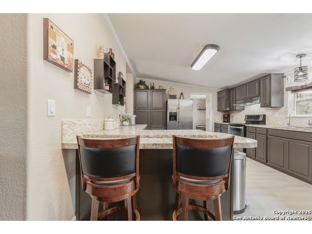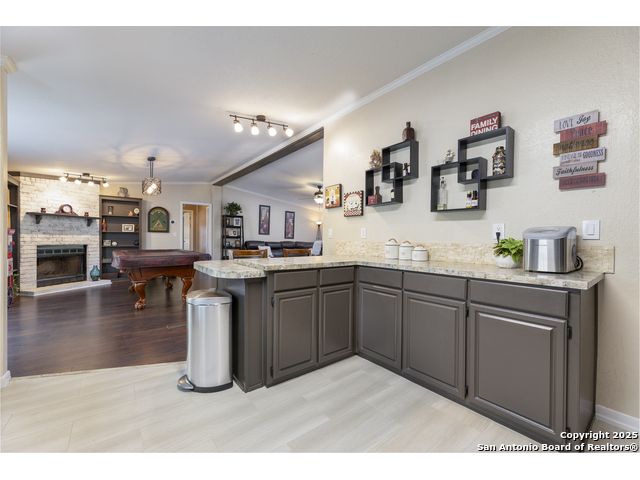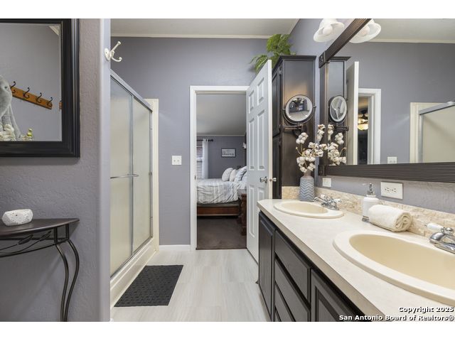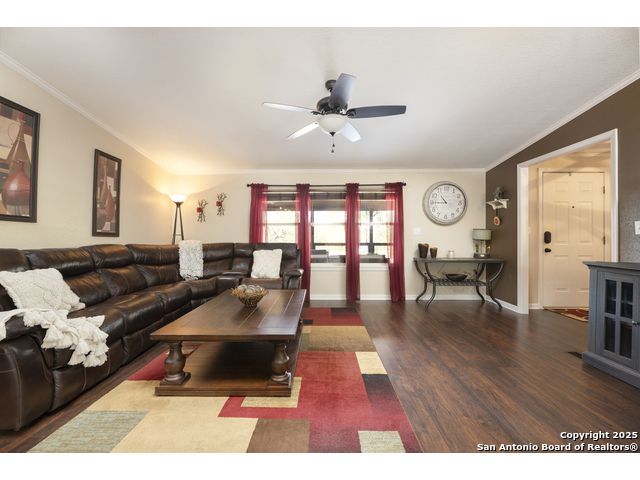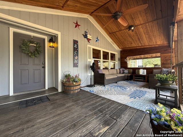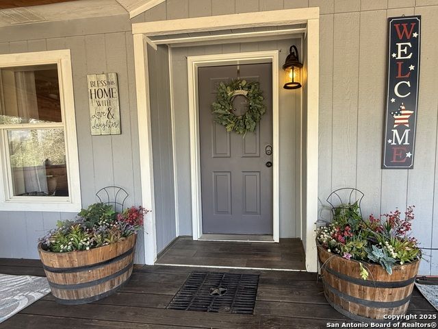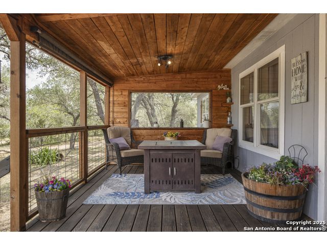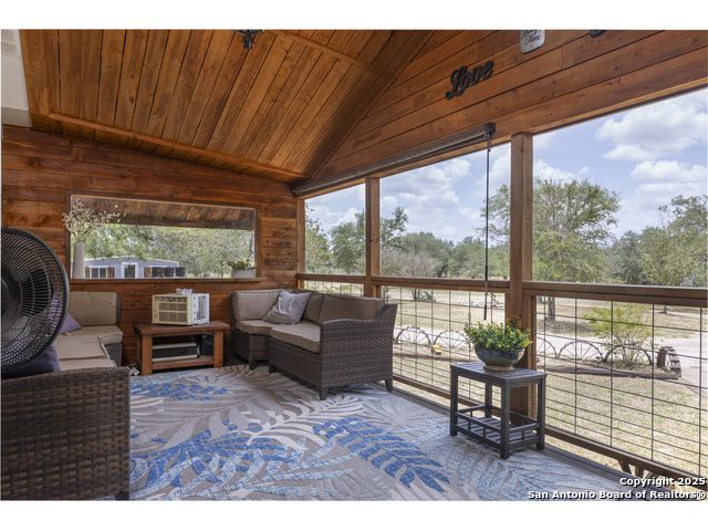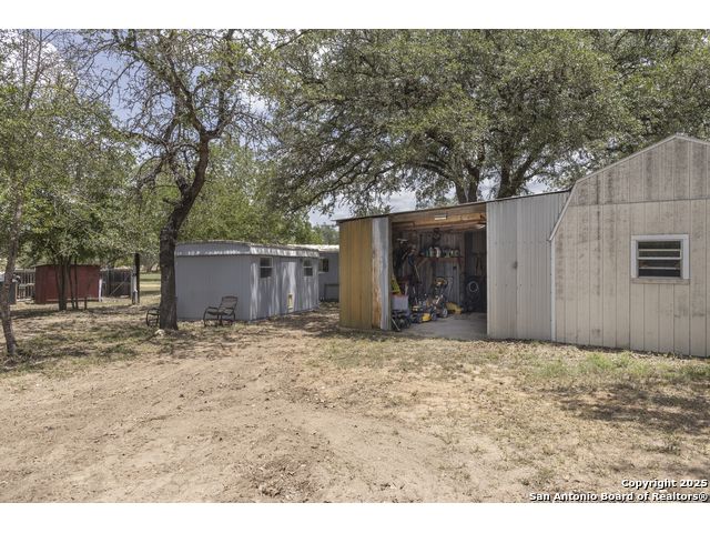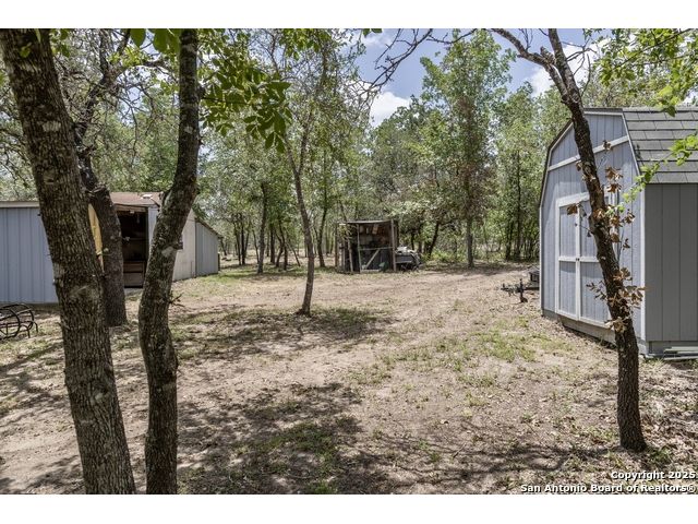 Stop scrolling- this 10-acre retreat has it all. Updated 3 bedroom, 2 bath home. Gated entry. Circle drive. Sprawling oak trees and wide-open skies. From the moment you arrive, it feels less like a house and more like a lifestyle. Inside, the home is warm and inviting with modern finishes. Open living and dining. Large kitchen. A second living room or office. Comfortable bedrooms with plenty of storage. The enclosed front porch, wrapped in wood, adds charm and extra living/entertaining space. Out back, an oversized deck overlooks a fire pit with stone seating, koi pond and target practice ranges, and around the corner is your fenced garden with raised beds. Outbuildings include a powered workshop/barn with covered parking, storage shed with loft, bird coop, and two climate-controlled buildings for hobbies, guests, or a home business. There's also a full slab ready for your second home, garage, or entertaining area. The setting here is unforgettable- towering oaks shade a pergola and swing, giving the land a private park feel. Just off 281-S near 1604, commuting is easy. Even better, the tax rate is only 1.49%. This is true country living, close to the city, ready for you to make it your own.