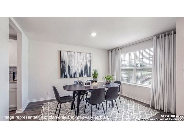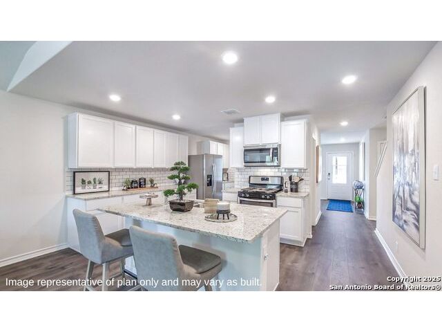 Introducing The Lombardi, a two-story home featured in our The Canyons at Amhurst community in San Antonio, TX. This floor plan offers 3 classic front exteriors, a 2-car garage, and a full yard landscaping and irrigation package ensuring that your home looks its best every single day. Inside this 5 bedroom, 2.5 bathroom home, you'll find 2539 square feet of open-concept living. A deep-set, covered porch (per plan) opens to a foyer, formal dining room, and powder room. A butler entry connects the dining room and spacious kitchen lined with abundant cabinetry and quartz-top counterspace. Classic white subway tile backsplash and stainless steel appliances are a perfect accent, and a kitchen island with a deep single basin kitchen sink faces the living room. The private main bedroom suite is located off the living room and features a luxurious garden bath tub, a separate walk-in shower with tile surround, double vanity sinks, ceramic tile flooring, a separate door for the toilet and a large walk-in closet. Head up the stairs and tour the second floor of your brand new home! A versatile loft area greets you at the top of the stairs, complete with quality carpet and tons of natural light. Your four secondary bedrooms are located off the loft and include carpet flooring and spacious walk-in closets. Additional features include 9-foot ceilings, 2-inch faux wood blinds throughout the home, luxury vinyl plank flooring in the entryway, living room, kitchen, and dining room, ceramic tile at all bathrooms and utility room, pre-plumb for water softener loop, and more! You'll enjoy added security in your new home with our Home is Connected features. Using one central hub that talks to all the devices in your home, you can control the lights, thermostat and locks, all from your cellular device.