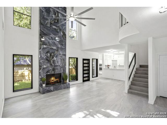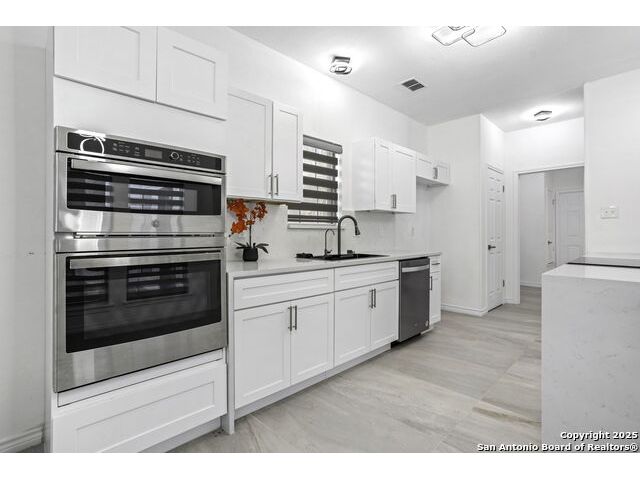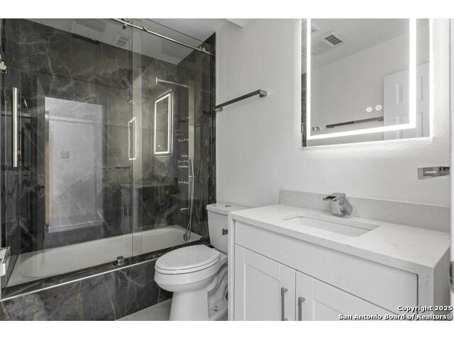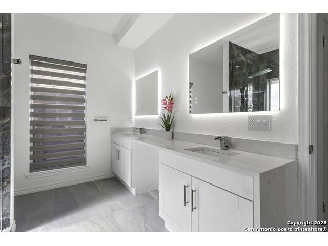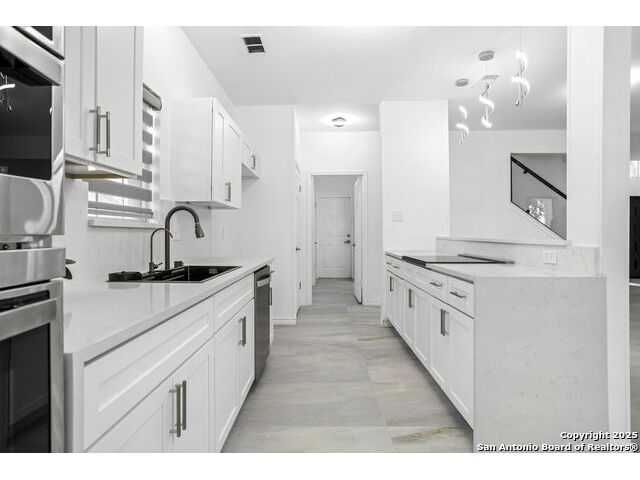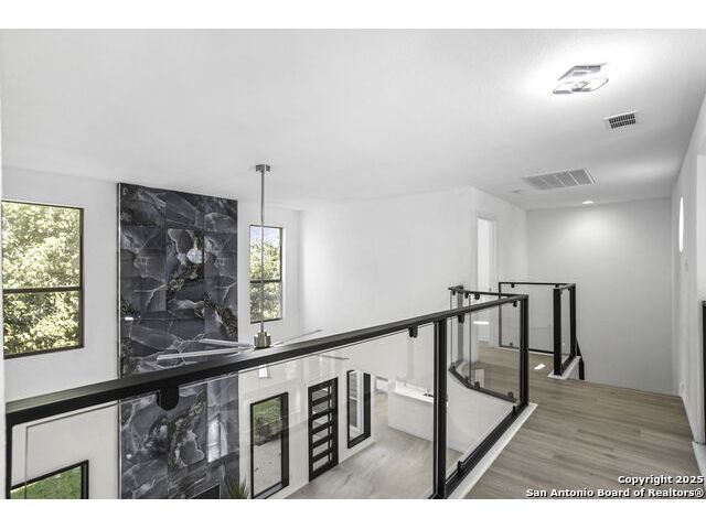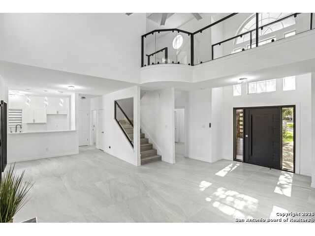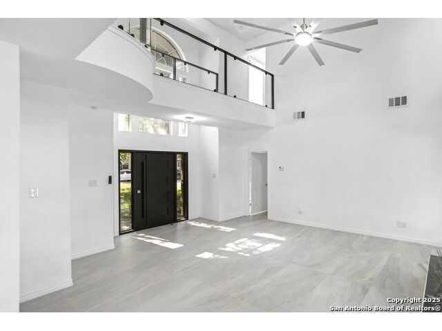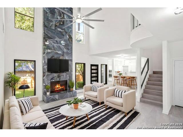 Welcome to a stunning, fully renovated residence in the gated enclave of Canyon Creek Bluff-ideally located just north of Deerfield at Blanco and Loop 1604. Nestled in a community of only 130 homes, this corner-lot gem combines elegance, convenience, and thoughtful upgrades just 0.3 miles from vibrant shopping and dining in nearby Stone Oak. Exceptional Outdoor Appeal Enjoy a lush lawn of St. Augustine grass, maintained by a full sprinkler system and complemented by a water softener for added comfort. Over $100,000 in Modern Upgrades From the sleek custom steel front door to upgraded windows, doors, flooring, and wall finishes, every detail reflects refined craftsmanship. Sophisticated Bathrooms Each bathroom features dual vanities and double showers, delivering a spa-inspired experience with a clean, modern aesthetic. Gourmet Kitchen Cook like a pro with built-in oven and microwave, custom sink, and a contemporary cooktop-all designed for form and function. Smart and Spacious Design Downstairs, enjoy the privacy of a Primary Suite and the convenience of a home office. Upstairs offers three spacious bedrooms connected by a dramatic catwalk, adding architectural flair. Striking Interior Touches Unique windows, handcrafted railings, elegant fixtures, and premium blinds add character to every space.