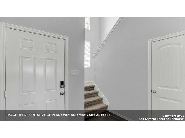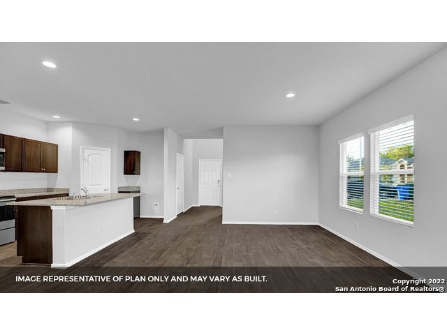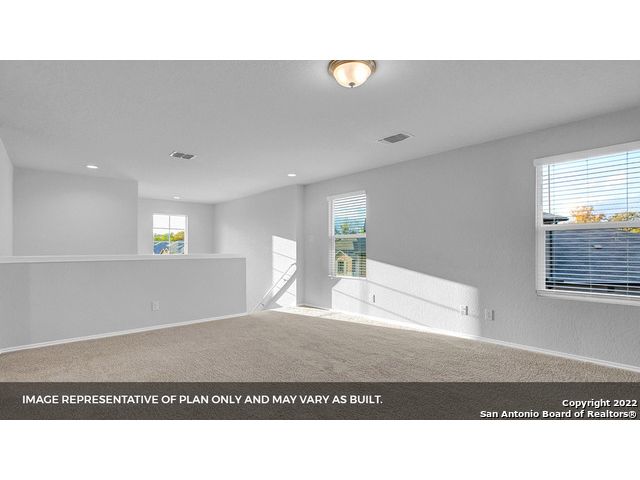 The Pierce floor plan, located at Brookstone Creek in San Antonio, TX, offers the perfect blend of functional living and thoughtful design across two spacious levels. With 4 bedrooms, 2.5 bathrooms and an open-concept layout, this home is built to meet the needs of today's busy households. The heart of the home is the blended kitchen and main living area, where stainless steel appliances, a gas cooking range, quartz countertops and classic white subway tile backsplash all come together around a spacious kitchen island - perfect for entertaining or everyday meals. The primary bedroom suite is conveniently located on the main level of the home, providing a private escape with a walk-in shower, dual vanity sinks, a separate water closet and a generous walk-in closet. As you ascend the grand staircase, you're greeted by an open-to-below game room, creating an airy, connected feel that enhances the home's spacious design. This versatile space is perfect for a secondary living area, media room, or playroom. Additionally, all your secondary bedrooms are located upstairs and center around a full bathroom, offering comfortable accommodations for family or guests. This home includes our HOME IS CONNECTED base package. Using one central hub that talks to all the devices in your home, you can control the lights, thermostat and locks, all from your cellular device. Additional features include vinyl plank flooring throughout the main living and wet areas, a covered patio (per plan), full yard landscaping with irrigation, and a pre-plumbed water softener loop for added convenience. The Pierce is a dynamic two-story home offering style, comfort and flexibility, all located in welcoming Brookstone Creek.