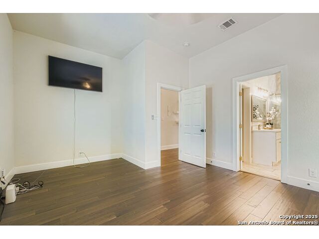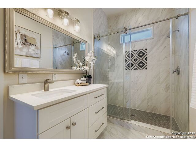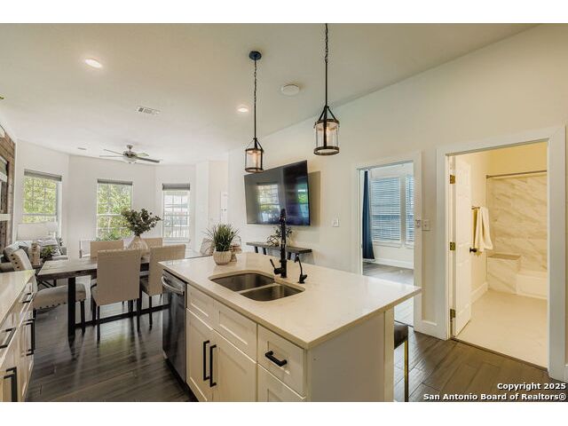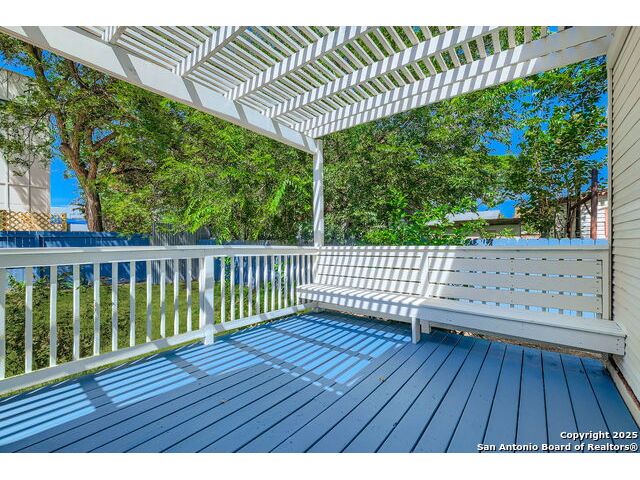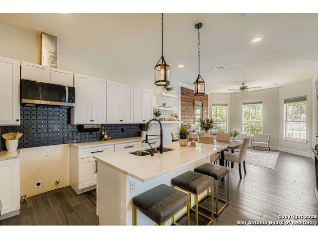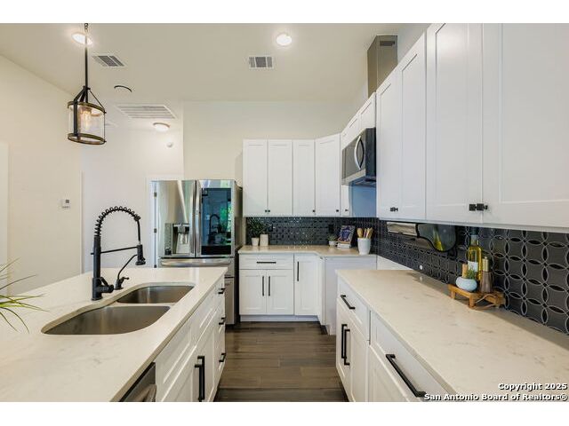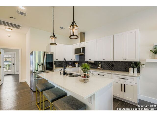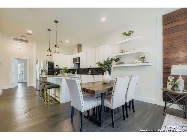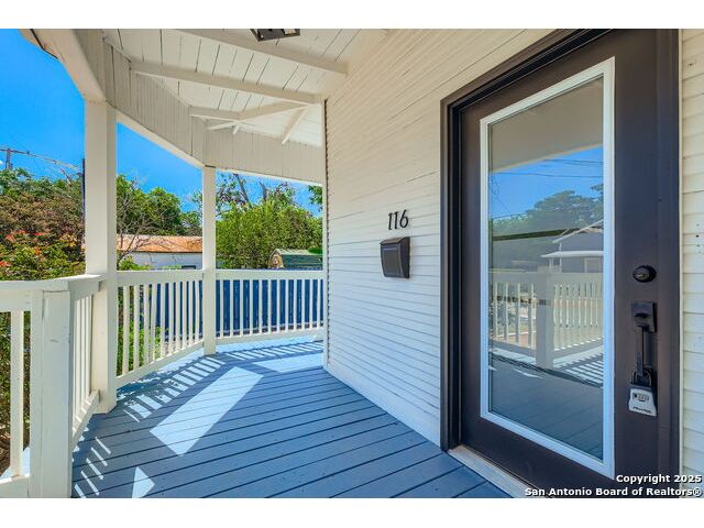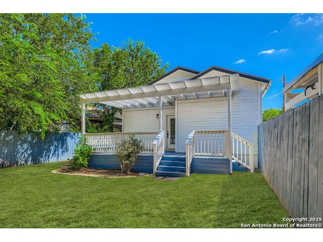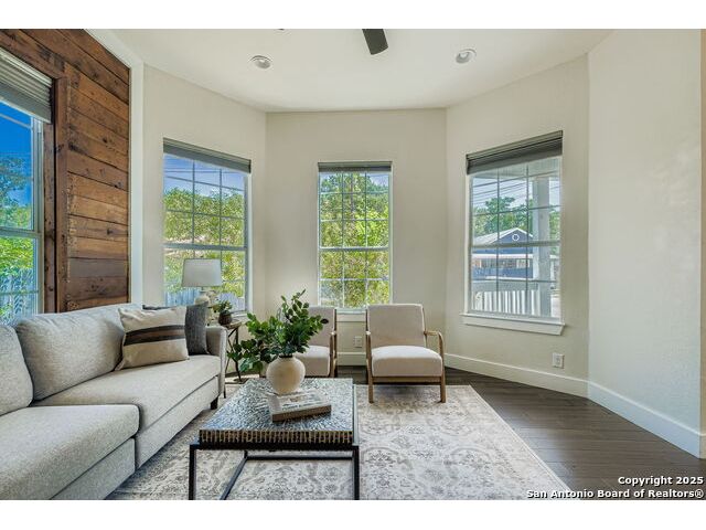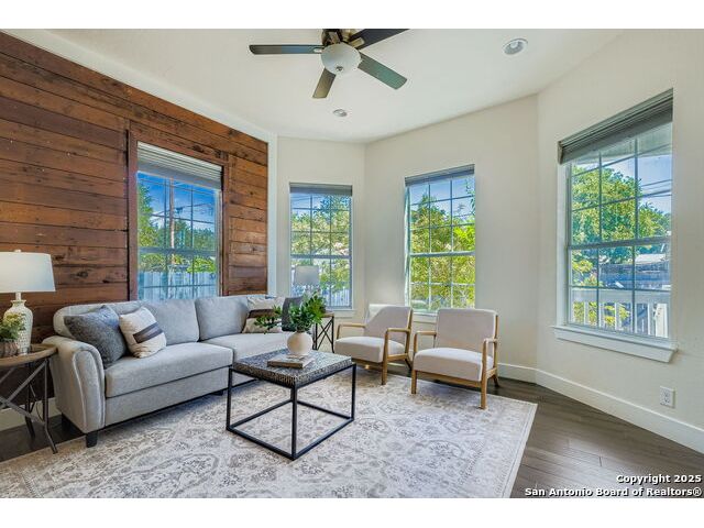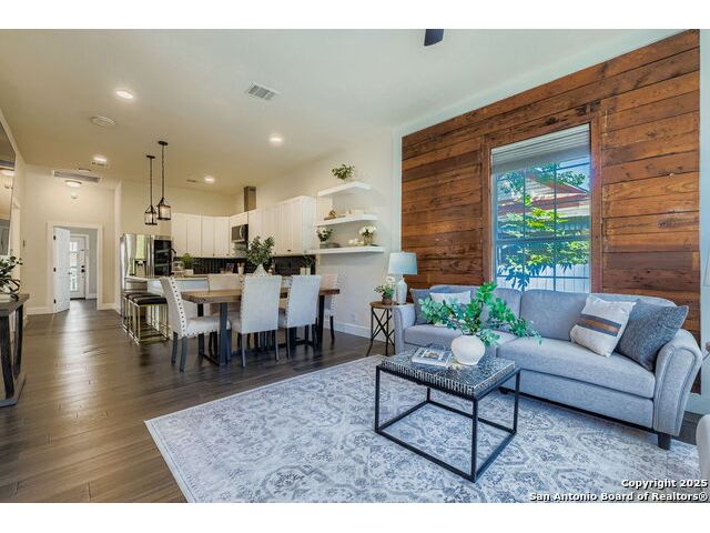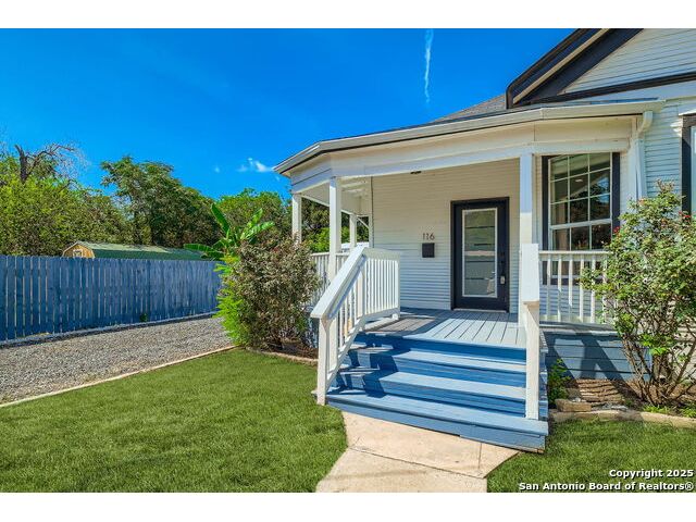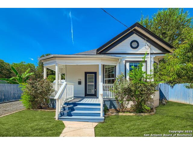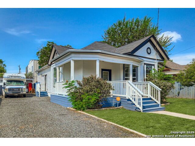 Welcome to a beautifully preserved 1920s gem that blends timeless character with thoughtful modern updates. Nestled in one of San Antonio's most vibrant and culturally rich neighborhoods, this home offers the perfect mix of charm, comfort, and convenience. Step onto the iconic wraparound porch and into a bright, thoughtfully curated interior. The living area features floating shelves, beautiful lighting, and a gorgeous reclaimed wood wall. Custom window treatments - designed specifically for the home - add beauty, privacy, and will remain with the property. The kitchen is equipped with a top-of-the-line appliance package, including the refrigerator, washer, and dryer, AND an 85-inch screen TV - making this home truly move-in ready. The primary suite offers private access to a spacious covered patio - ideal for relaxed mornings or evening gatherings. Major improvements include foundation repairs, home leveling, a new HVAC filtration system, and an advanced water filtration system for comfort and peace of mind. Out back, enjoy a fully enclosed retreat built for both relaxation and functionality - featuring fruit-bearing peach, orange, and lemon trees, a privacy fence perfect for pets, and a covered sitting area just off the primary suite. A detached, air-conditioned workshop adds bonus space for hobbies or storage. The extended shadow stone driveway accommodates four vehicles, and a bold privacy-blue front fence sets the tone for this unique property. The location is a dream - just a 4-minute walk to Il Forno (AMAZING pizza!), a 10-minute stroll to Kunstler Brewing, and a short bike ride to SoFlo, King William, and Southtown - where San Antonio's creative energy shines through its art, culture, and world-class dining. This is more than a home - it's a lifestyle.