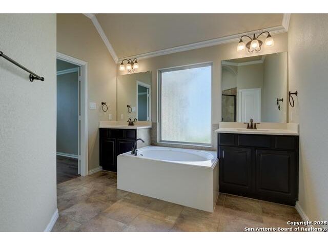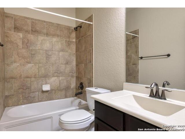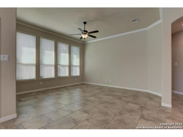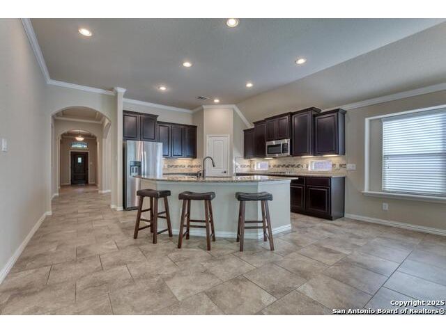 This meticulously maintained home offers a standout floor plan featured as Lennar's popular model home -move-in ready and packed with value due to custom upgrades. Nestled on a level lot that backs to a peaceful green space. This home offers privacy in the backyard. Inside, enjoy an open-concept layout with high ceilings, energy-efficient features like ceiling fans and a programmable thermostat, and custom finishes throughout which includes upgraded kitchen cabinets. Lennar's signature "All Included" features shine here: stainless steel appliances, upgraded granite kitchen counters, crown molding, designer tile backsplash, 18 staggered tile flooring in living areas and Lifeproof flooring in bedrooms (No Carpet), and a luxurious jetted garden tub in the master bath. The full sprinkler system keeps the yard looking its best, while the extended 12 16 patio slab expands your outdoor living space-ideal for entertaining. The wood fence was replaced and stained in 2023. Feb 2025 a new tankless water heater was installed. This home checks all the boxes for style, comfort, and convenience. A must-see for buyers seeking turnkey living in a serene setting!