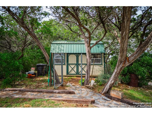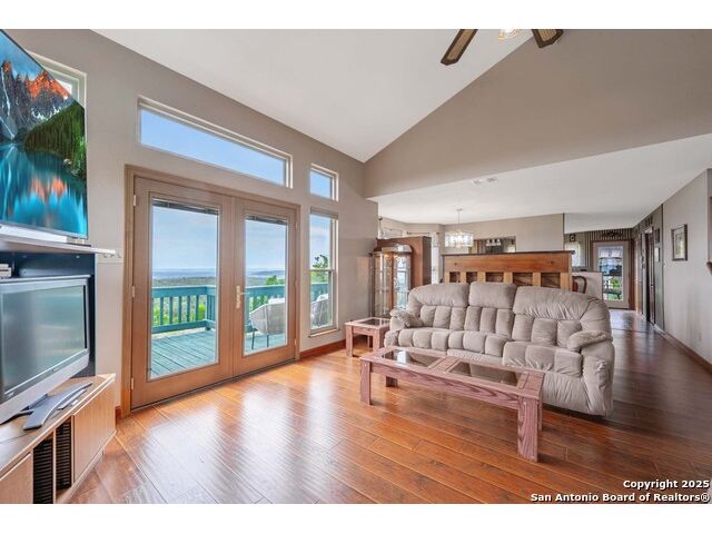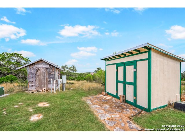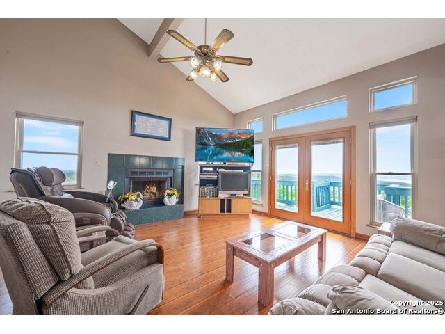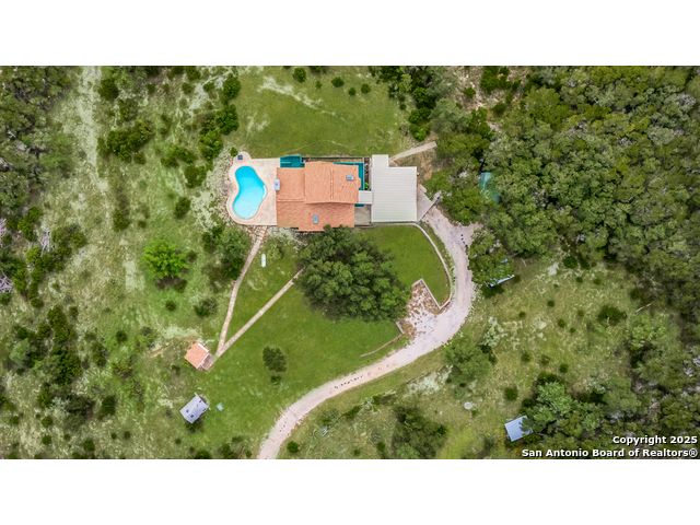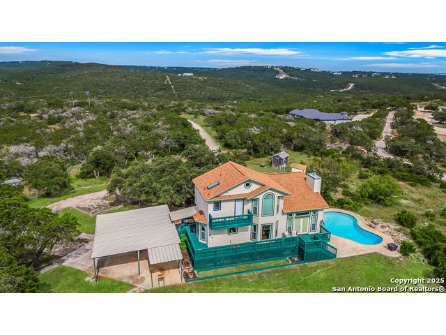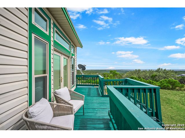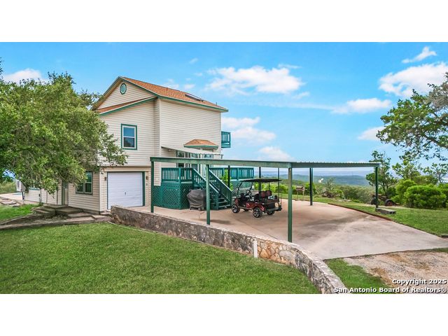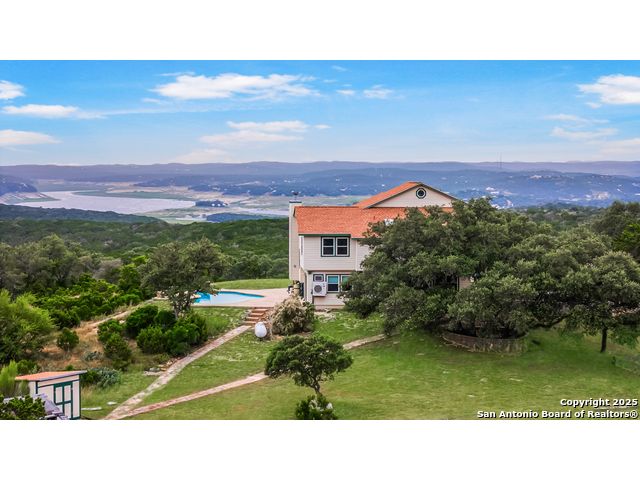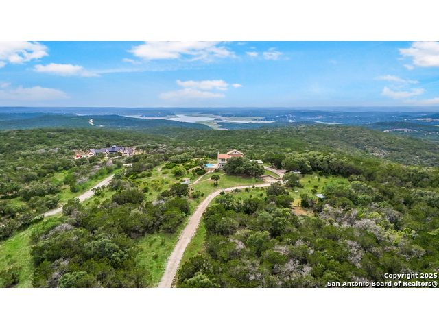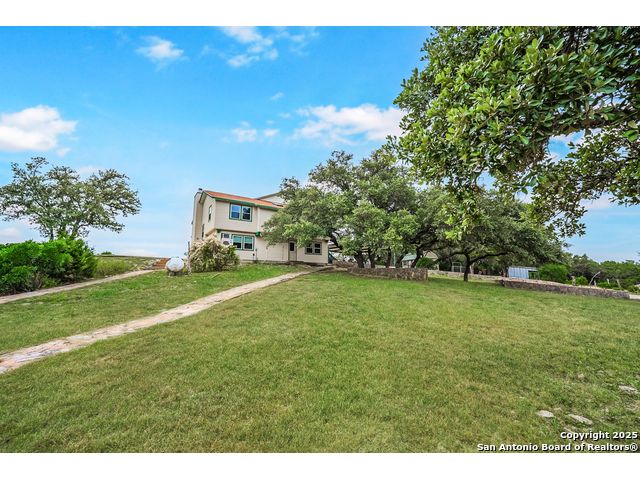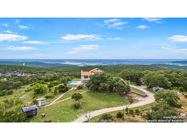 MUST-SEE VIDEO TOUR!!! Welcome to 1494 County Road 270, a rare 46.09-acre hilltop estate in Mico, TX, offering panoramic views of Medina Lake and the surrounding Hill Country. This Tudor-style 3 bed, 2 bath home sits atop one of the highest elevations in the area, with unmatched privacy, breathtaking scenery, and zero HOA or deed restrictions. Inside, you'll find an open floor plan with vaulted ceilings in the living room, a gas fireplace, and beautifully updated flooring throughout. The kitchen features an upgraded gas range, along with extensive storage and light-filled bay windows in the breakfast nook. Additional bay windows in the formal dining room and upstairs primary suite take full advantage of the views. The split-level layout offers two guest bedrooms and a full bathroom with skylight, while the upstairs primary suite includes its own remodeled en suite bath, a walk-in closet, and private step-out balcony - the perfect perch to watch the sun rise over the lake. On the main level, a half-wraparound deck faces the lake, ideal for sipping morning coffee or relaxing in solitude. Below the home, a separate guest suite with full bath and private entrance offers excellent STR or creative space potential (not included in the main home's square footage or bed/bath count). Recent upgrades include: a motorized gated entrance, chip-sealed driveway, new roofs on the home and pump house, updated HVAC system and water heater, upgraded breaker panel, improved insulation, remodeled primary bathroom, and all new Window World brand windows and exterior doors. The estate includes three sheds: a traditional storage shed, a repurposed chapel now serving as a charming workshop, and a fully equipped pump house with a private well, water purification system, and softener. A greenhouse and two livestock shelters add further functionality to the land. Just 17 miles down Culebra from Loop 1604, this property offers unmatched versatility, seclusion, and long-term potential. Schedule your private showing today.