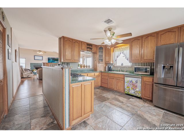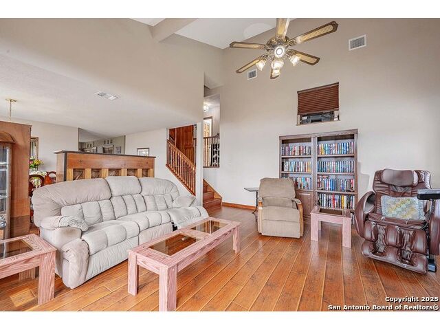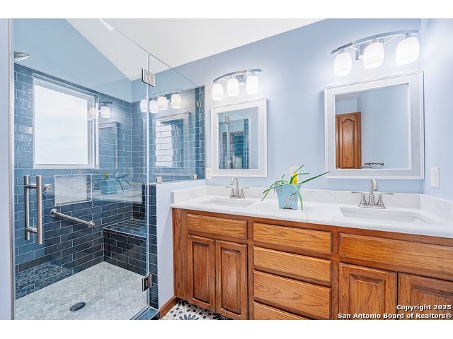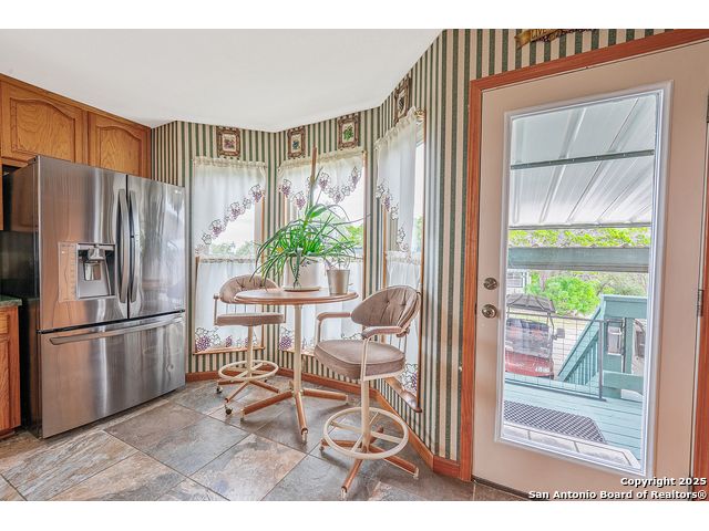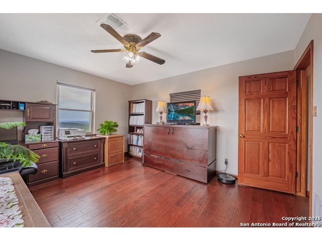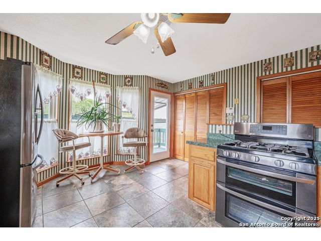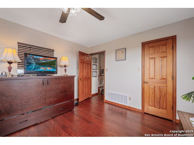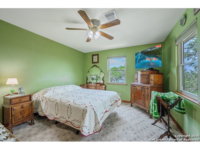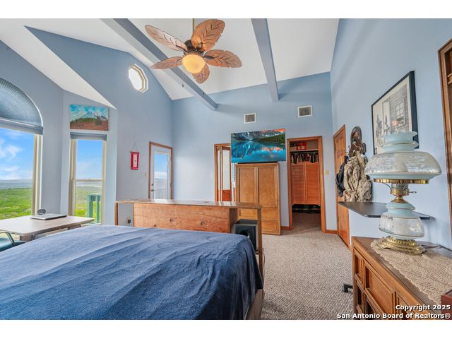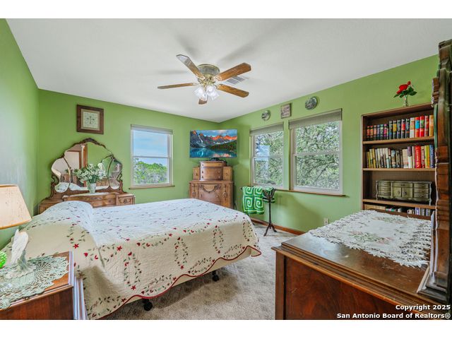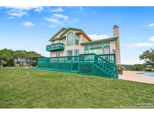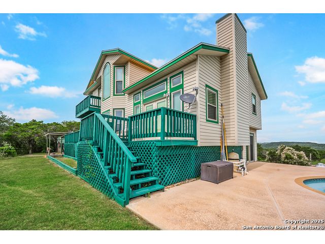 MUST-SEE VIDEO TOUR!!! Welcome to 1494 County Road 270, a rare 46.09-acre hilltop estate in Mico, TX, offering panoramic views of Medina Lake and the surrounding Hill Country. This Tudor-style 3 bed, 2 bath home sits atop one of the highest elevations in the area, with unmatched privacy, breathtaking scenery, and zero HOA or deed restrictions. Inside, you'll find an open floor plan with vaulted ceilings in the living room, a gas fireplace, and beautifully updated flooring throughout. The kitchen features an upgraded gas range, along with extensive storage and light-filled bay windows in the breakfast nook. Additional bay windows in the formal dining room and upstairs primary suite take full advantage of the views. The split-level layout offers two guest bedrooms and a full bathroom with skylight, while the upstairs primary suite includes its own remodeled en suite bath, a walk-in closet, and private step-out balcony - the perfect perch to watch the sun rise over the lake. On the main level, a half-wraparound deck faces the lake, ideal for sipping morning coffee or relaxing in solitude. Below the home, a separate guest suite with full bath and private entrance offers excellent STR or creative space potential (not included in the main home's square footage or bed/bath count). Recent upgrades include: a motorized gated entrance, chip-sealed driveway, new roofs on the home and pump house, updated HVAC system and water heater, upgraded breaker panel, improved insulation, remodeled primary bathroom, and all new Window World brand windows and exterior doors. The estate includes three sheds: a traditional storage shed, a repurposed chapel now serving as a charming workshop, and a fully equipped pump house with a private well, water purification system, and softener. A greenhouse and two livestock shelters add further functionality to the land. Just 17 miles down Culebra from Loop 1604, this property offers unmatched versatility, seclusion, and long-term potential. Schedule your private showing today.