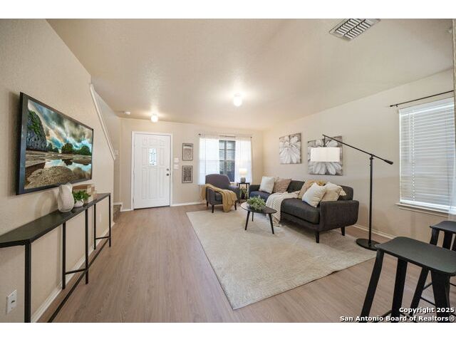 Nestled in a cul-du-sac you will find this great starter home, or it could serve well as an investment property! Location is prime, located near Loop 410 & Wurzbach. Recently, the owners completed a "refresh" to include new Luxury Vinyl Plank flooring installed on the main level, with two new commodes installed in the 2-full baths, on the second level. The HVAC has been serviced, cleaned and refurbished. This home is so cute and ready for move in! It is priced to correspond with the current Market Conditions! Schedule your showing today!