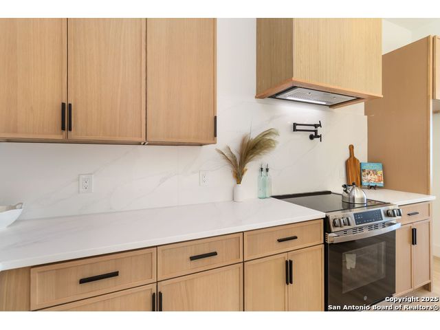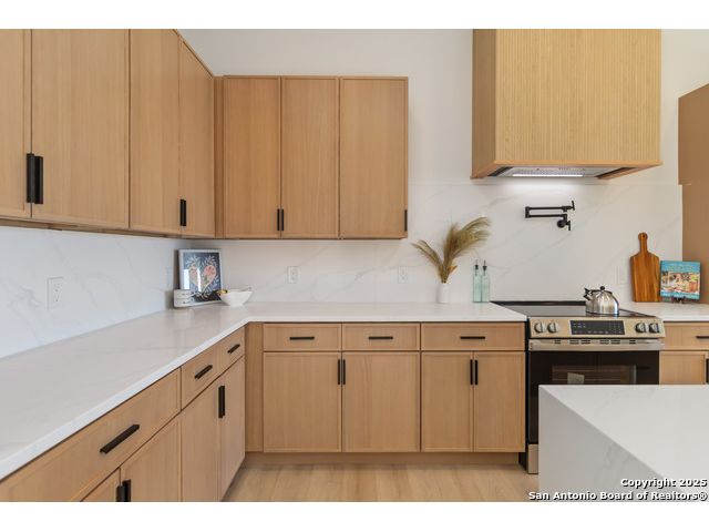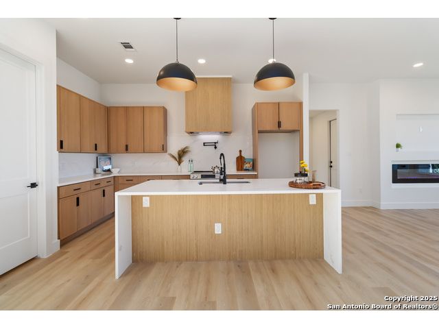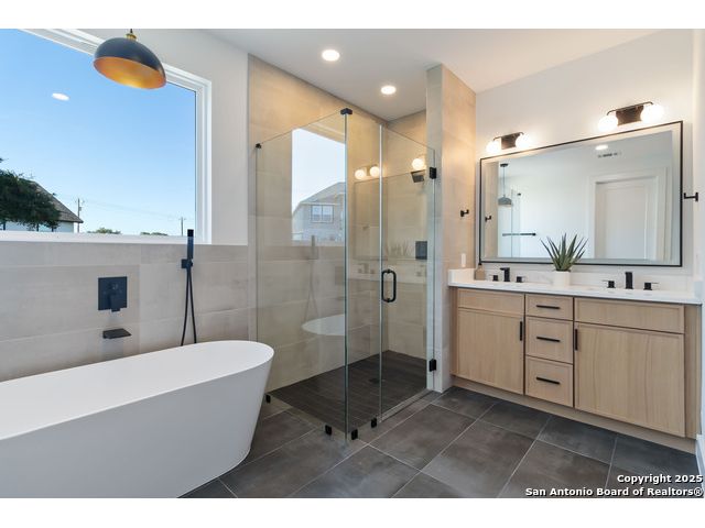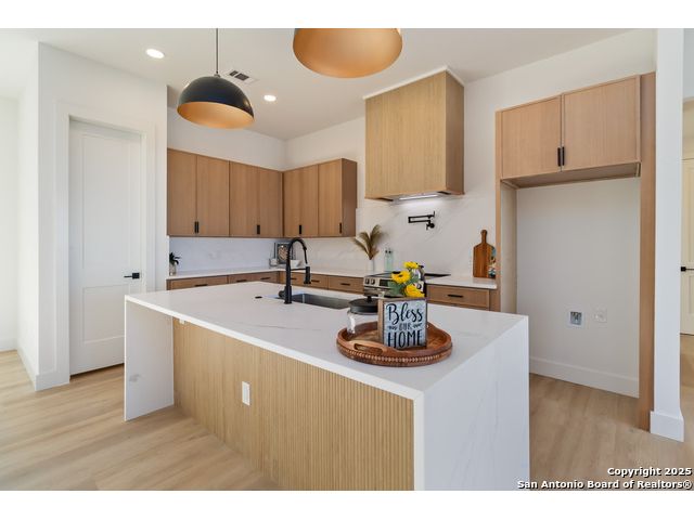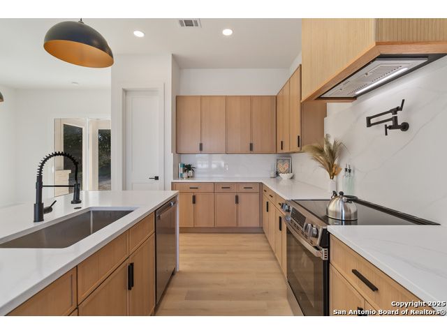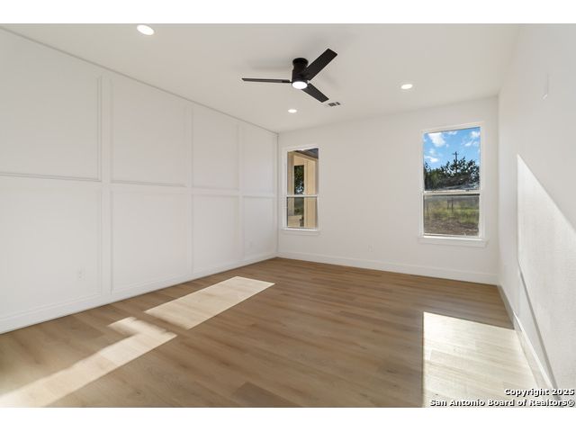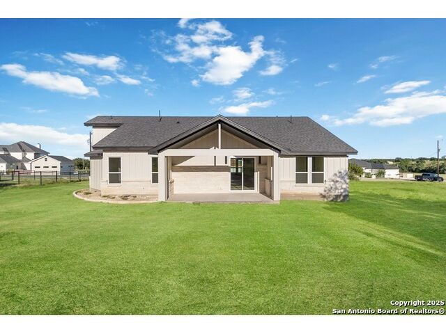Stunning New Construction in Rockin J Ranch! Welcome to this beautifully crafted 3-bedroom, 3.5-bathroom home located in the highly desirable Rockin J Ranch community. Thoughtfully designed with both style and comfort in mind, this home features modern finishes and luxurious touches throughout. Each of the spacious bedrooms boasts its own private full bathroom and walk-in closet, offering comfort and privacy for everyone. The primary suite is a true retreat with an exquisite bathroom showcasing a garden tub, spacious walk-in shower, and elegant detailing. The heart of the home is the gourmet kitchen, equipped with quartzite countertops, a pot filler, and a large walk-in pantry, perfect for entertaining or everyday living. A versatile bonus room provides the ideal space for a home office, study, or flex space of your choice. The elegant fireplace makes staying in on cold nights a cozy affair. From the modern fixtures to the gorgeous architectural details, this home truly has it all. Includes a 1-2-10 builder warranty and energy efficient spray foam insulation as well. Don't miss your chance to own a piece of Hill Country elegance in Rockin J Ranch.