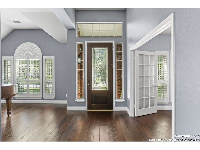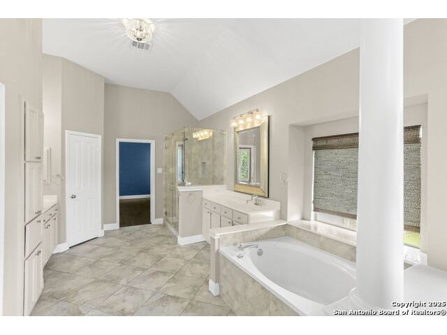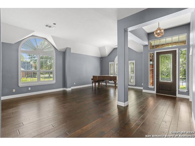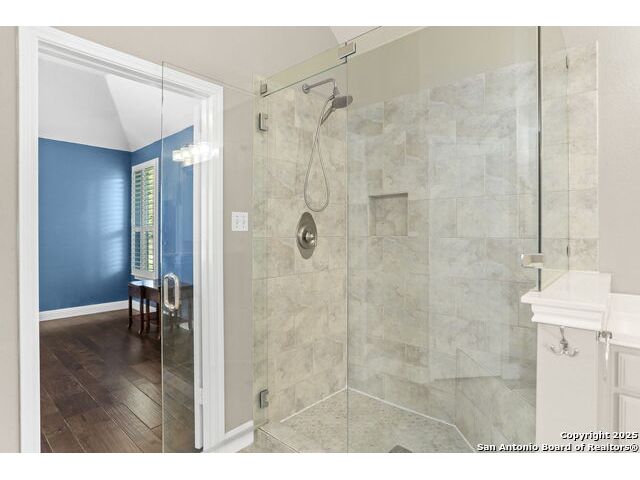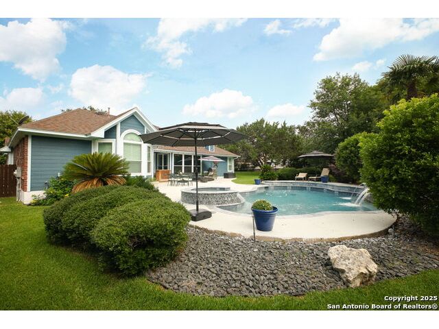 Located in the exclusive gated community of Country Estates just off I10 near Boerne, this half-acre property is a rare find. Towering mature trees surround the backyard, creating exceptional privacy for the sparkling inground pool and outdoor entertaining space. Inside, enjoy soaring 12 ft ceilings and expansive 7 ft windows that flood the home with natural light. The upgraded kitchen is perfect for gatherings, while the spacious master suite offers a spa-like bath with a large walkin shower and soaking tub. Just 2 minutes to I10, providing quick and easy access for your daily commute. With multiple living spaces and room for everyone to spread out, this home is built for both comfort and entertainment.
