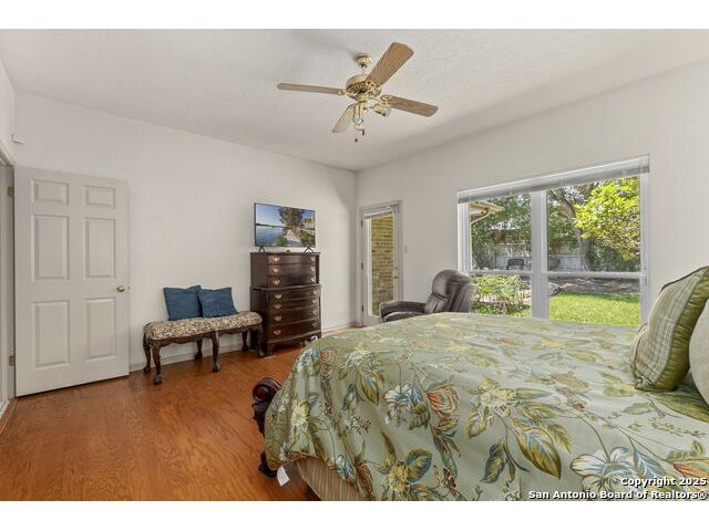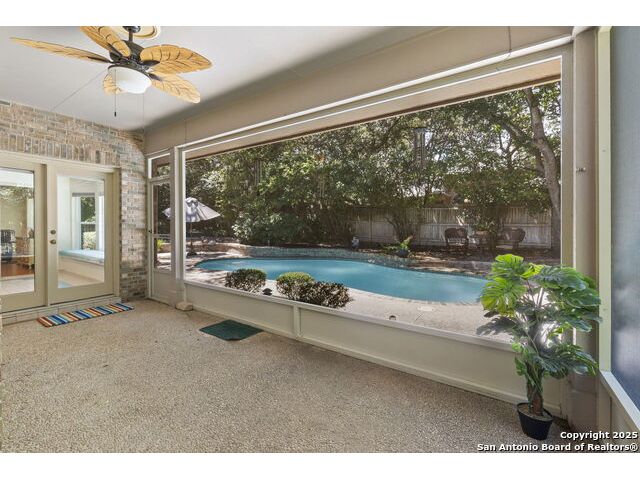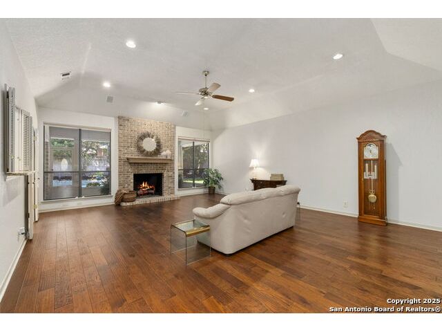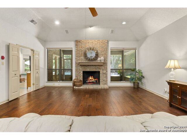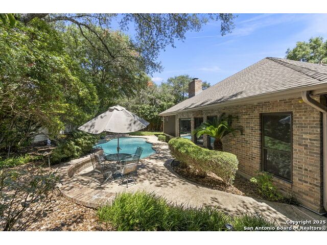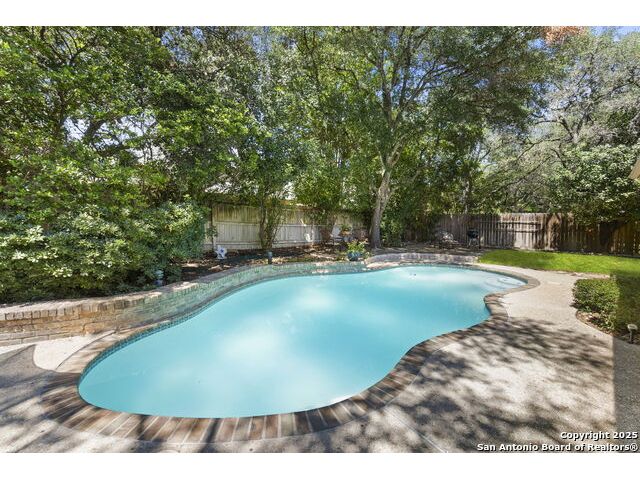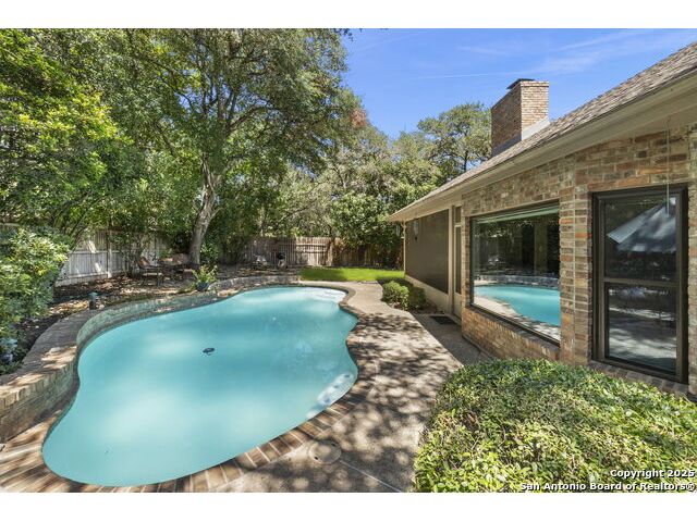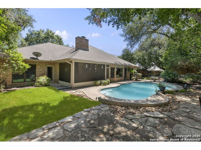 Tucked on a tree-lined lot with inviting curb appeal, this 4-bedroom, 3-bathroom home blends comfort, style, and functionality. Just a short distance to the neighborhood pool, sports courts, and park, it's the perfect setting for both relaxation and activity. Inside, hardwood flooring enhances the primary suite, family room, dining area, and three spacious secondary bedrooms. The oversized family room impresses with soaring ceilings and a dramatic floor-to-ceiling brick fireplace-ideal for cozy evenings or lively gatherings. A bonus room off the breakfast area provides a secondary living space. The kitchen boasts granite countertops and plenty of space for meal prep and entertaining. The primary suite includes a gorgeous en suite bathroom with dual vanities, a sunken tub, and a separate shower. Step outside into a private backyard oasis featuring a screened-in porch, a covered outdoor living area, and an in-ground pool with recent updates including a new pump and filter. A dedicated storage area for pool gear and yard tools, along with a garage featuring epoxy flooring and extra shelving, add convenience to everyday living. With recent updates including both HVAC units, fresh interior paint, and pool improvements, this home is ready for your customization. A rare opportunity to own a spacious, well-cared-for home in a community filled with amenities.
