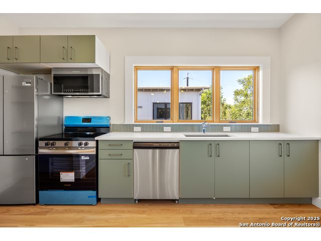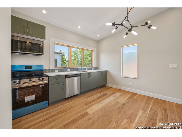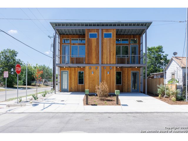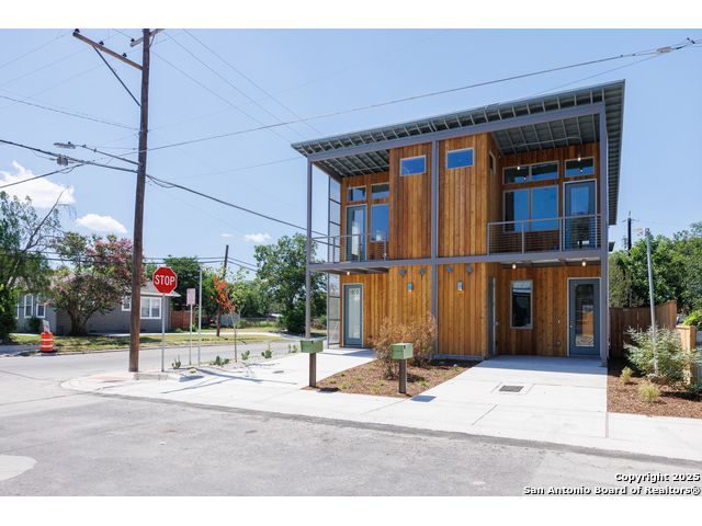 Brand new single family home in Denver Heights, only a few blocks from downtown and the upcoming Project Marvel. Contemporary zero-lot-line home by award-winning, local project team in Denver Heights. No condo association, no HOA, and no recurring fees- fee simple ownership opportunity. Contemporary, architect-driven design and construction. Commercial- grade carport below with private balcony above, sweeping neighborhood views, and small enclosed low-maintenance back yard. Solar and EV charger ready. Easy to ride a bicycle to many metro-area attractions: Hemisfair, Convention Center, Alamodome, and forthcoming Project Marvel mega-project + new Spurs arena. The other three identical homes in this project are also available at 1103 S. Cherry, 1107 S. Cherry, and 135 Louisiana St.