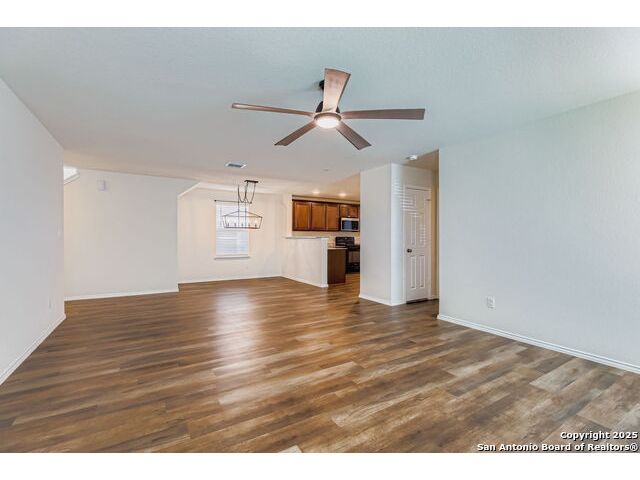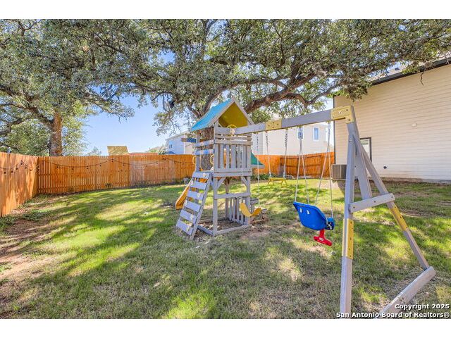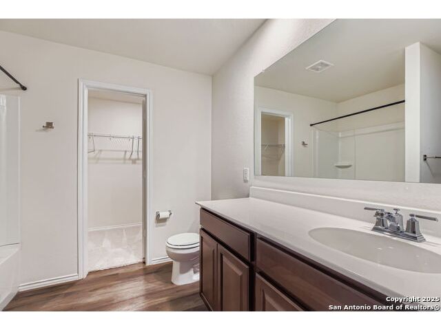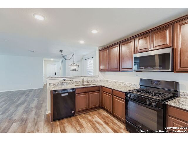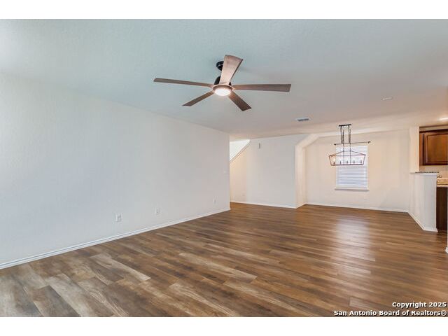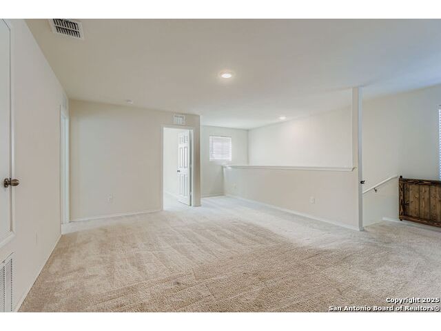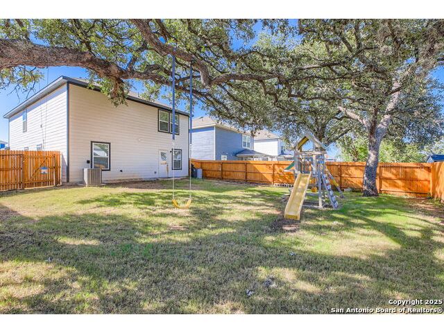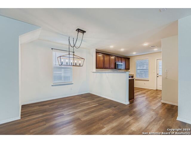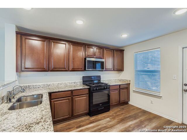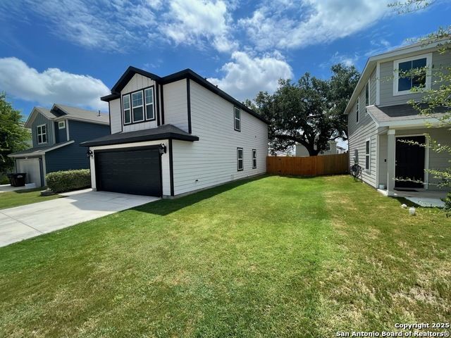 Nestled in the desirable Winding Brook community, this meticulously maintained two-story home spans 2,019 sqft, offering a spacious and light-filled layout with 4 bedrooms and 3 full bathrooms. The inviting main level features elegant vinyl plank flooring, expansive windows, and an open concept design perfect for entertaining. Enjoy a large living area, dedicated dining space, and a guest bedroom with a generous closet adjacent to a full bath-ideal for guests or extended family stays. The beautifully updated kitchen boasts granite countertops, ample cabinetry, a convenient breakfast bar, built-in microwave, and an ice maker hookup. Upstairs, the serene primary suite provides an oversized bedroom, a relaxing tub/shower combo, and an impressive walk-in closet. Two additional bedrooms with walk-in closets, a full bath, laundry room, and a versatile second living area/loft/game room round out the upper level, ensuring ample space for family time or entertainment. Step outside to discover a generously sized, fully fenced backyard, set on an expansive lot graced by two stunning mature oak trees, creating the perfect environment for outdoor enjoyment. The home also features upgraded garage flooring coating, enhancing both durability and aesthetic appeal. Conveniently situated near JBSA-Lackland, within the Northside ISD (elementary school located in the neighborhood), and close to SeaWorld, Six Flags, shopping, dining, and major highways, this home perfectly blends comfort, style, and convenience. Don't miss this exceptional opportunity!