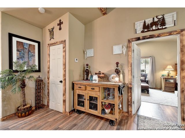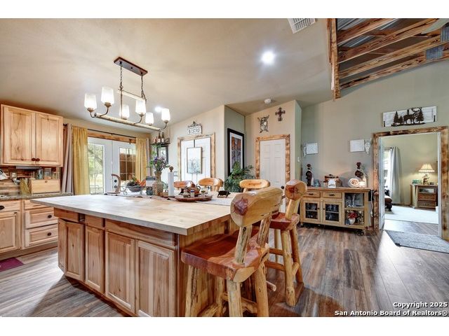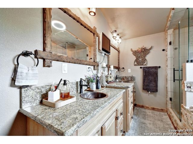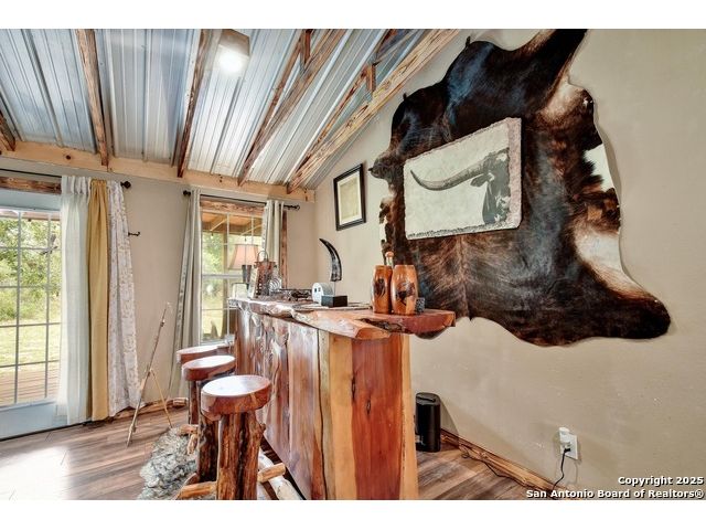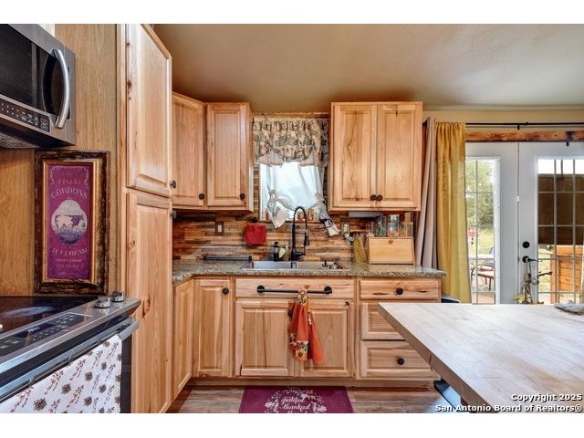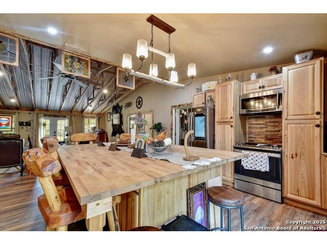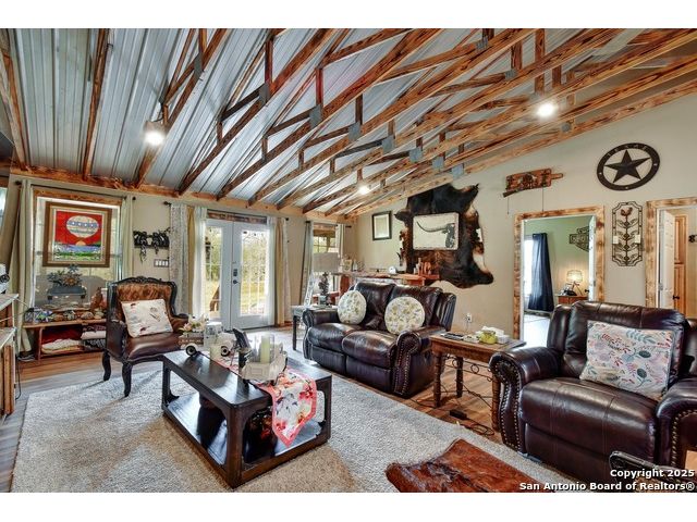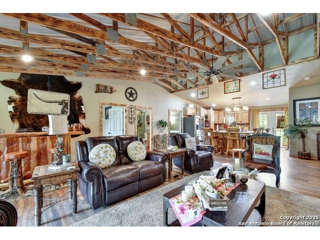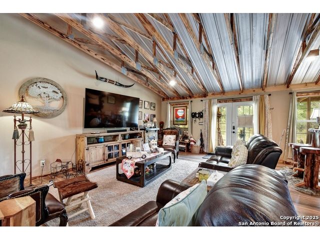 Open to owner financing!!! Welcome to your very own Texas Hill Country retreat! Copper sinks, wood beams, metal roofing, natural wood finishes, what more could you want! Nestled on just over 2 acres of peaceful, natural landscape, this charming Hill Country-style cottage blends rustic elegance with thoughtful design, offering the perfect escape from the everyday. Whether you're sipping coffee on one of the two spacious porches or taking in the scenic views right from your bedroom window, you'll enjoy the serene sights and sounds of nature all around you. Step inside to be greeted by soaring exposed wood beam ceilings, rich wood accents, and the timeless charm of a metal roof-all signature elements that give this home its unmistakable Texas character. The open-concept layout was designed with entertaining in mind, allowing you to prepare hearty, Texas-sized meals in the chef-ready kitchen, with natural hickory cabinets, while still being part of the conversation with friends and family. Built with intention and efficiency, this home eliminates wasted space-no hallways, just smart, functional living. The spacious owner's suite is a true sanctuary, featuring a luxurious ensuite bath with double copper vanities, a soaking tub, and a walk-in shower featuring Arcadia natural stone that feels straight out of a Texas design magazine. Whether you're looking for a full-time residence, weekend getaway, or short-term rental opportunity, this thoughtfully crafted home offers the perfect blend of comfort, character, and Hill Country soul. Come experience the charm-you may never want to leave.