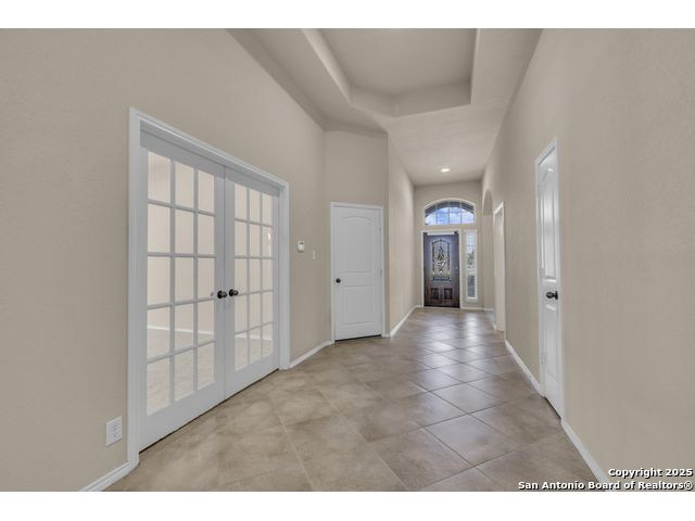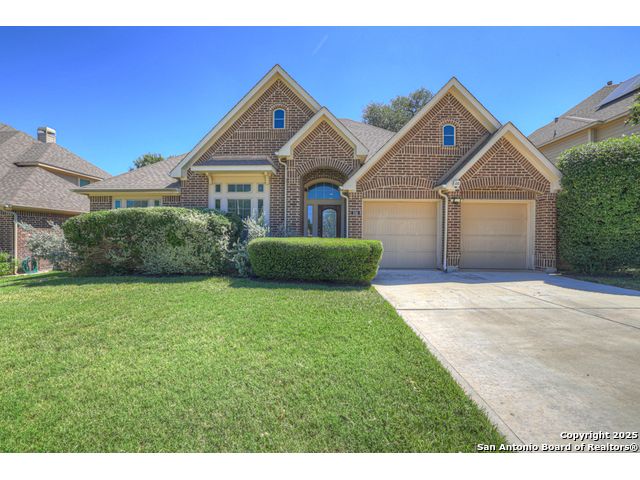 This gorgeous 4 bed, 3 bath Oak Run home is super clean and absolutely beams with pride of ownership! Home has no steps and boasts grand entrance foyer, 2 living areas, formal dining room with hardwood floors, and private office/library with French Doors. Dreamy kitchen features granite counters, stainless appliances, large center island with breakfast bar & lots of storage underneath, 42 inch raised panel cabinets, tile backsplash, recessed lighting, walk-in pantry, and gas cooking. Family room has high ceilings, ceramic tile flooring, cast-stone gas fireplace, and a wall of windows overlooking the sprawling covered back patio. Two car attached garage has 5 foot side extension for additional storage. Majestic century oak shades the backyard. Four sides brick, sprinkler system. This home has it all! Schedule a showing today!