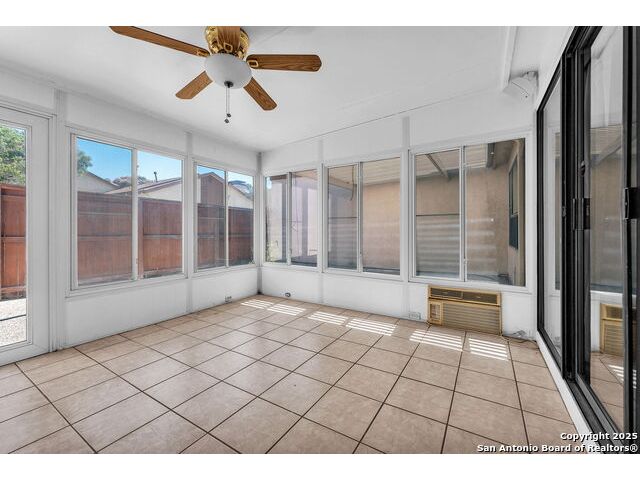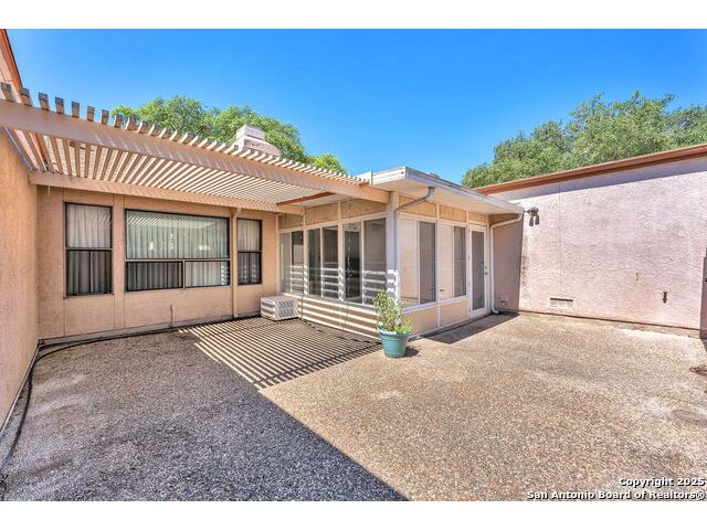 Townhome living at it's finest! Nestled within the complex and away from road noise, this 2/2 is ready for you! With plenty of room for a dining table and comfortable living area, you can also utilize the sun room for your favorite plants or art projects. The primary bath has an updated shower and a large walk in closet, in addition to a closet for linens. The secondary bedroom is separated well from the primary, with a second bath easily accessible. The low maintenance private patio is ready for your personalization, and the community pool is a short walk away. Close to shopping, 1604/281, and a quick shot to get to IH35 or IH10. Schedule your showing soon!