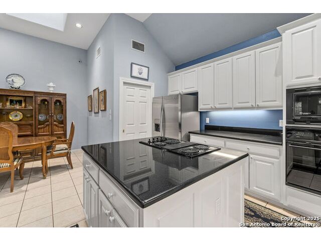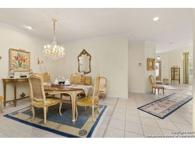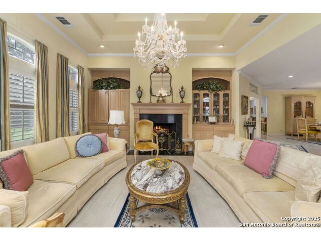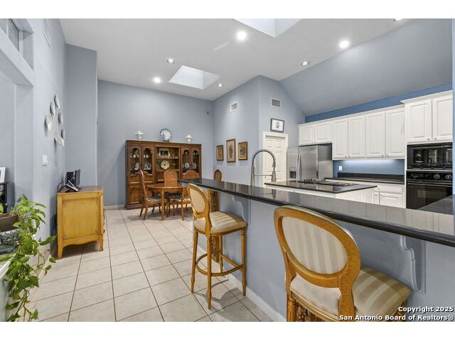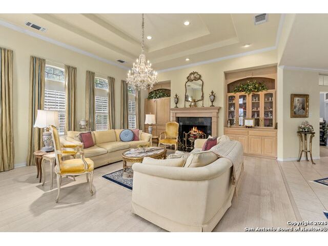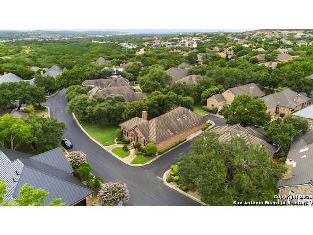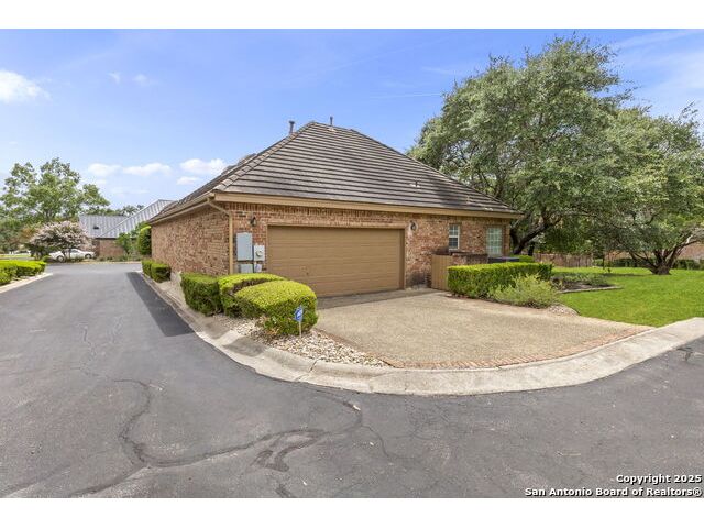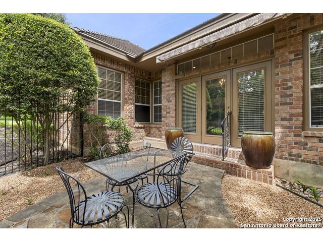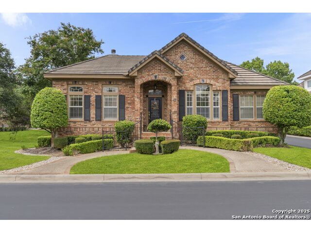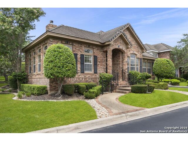Nestled in the prestigious Gardens at The Dominion, this impeccably maintained one-story home offers both convenience and timeless charm. Located on a greenbelt, it provides privacy and a peaceful setting, all with easy access through the North guard gate. Inside, soaring ceilings enhance the spacious feel throughout, while the expansive kitchen provides ample cabinetry and counter space, ideal for everyday living and entertaining. The home features abundant built-ins and custom touches, creating a seamless blend of function and elegance. The primary suite is oversized, along with dual walk-in closets, and separate vanities-a true retreat. The two additional bedrooms are located at the front of the home. Outdoors, professionally landscaped grounds elevate the home's curb appeal along with the added serenity of the greenbelt backdrop. This home is larger than what BCAD reflects, offering exceptional value in one of San Antonio's most sought-after communities. Located just minutes from IH-10, Loop 1604, The Rim, and La Cantera, you're never far from premier shopping, dining, and entertainment. A variety of membership options available at The Dominion Country Club.