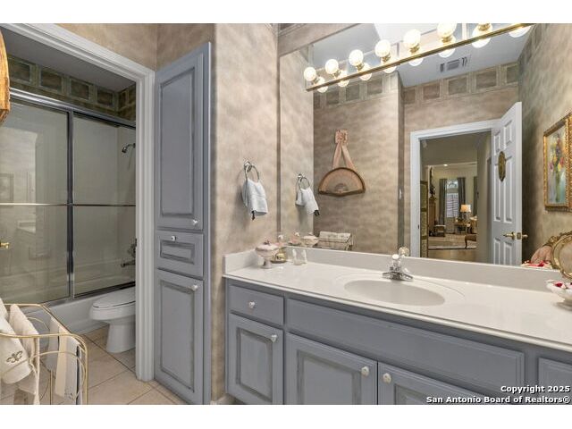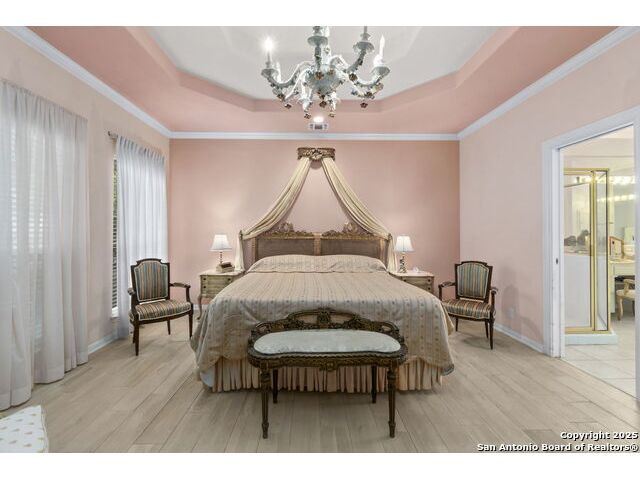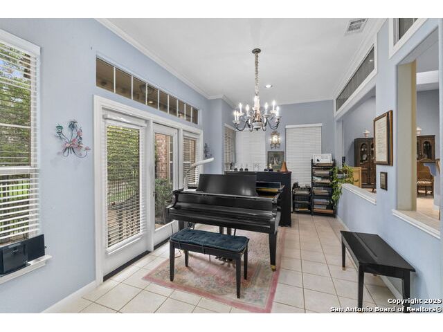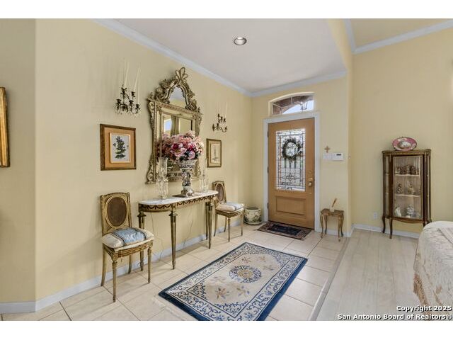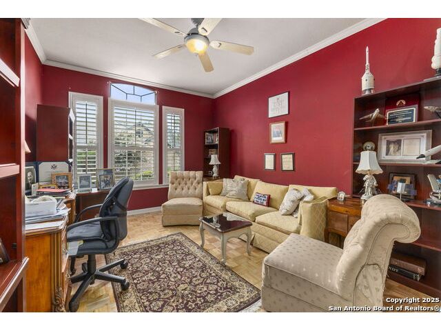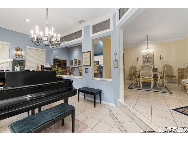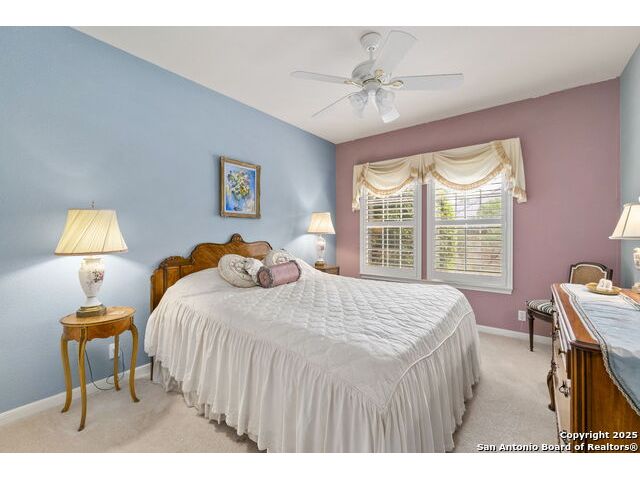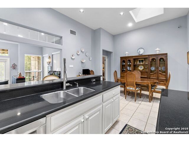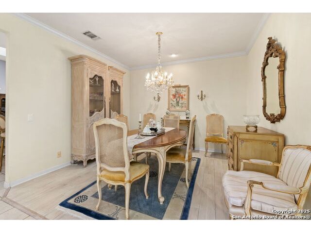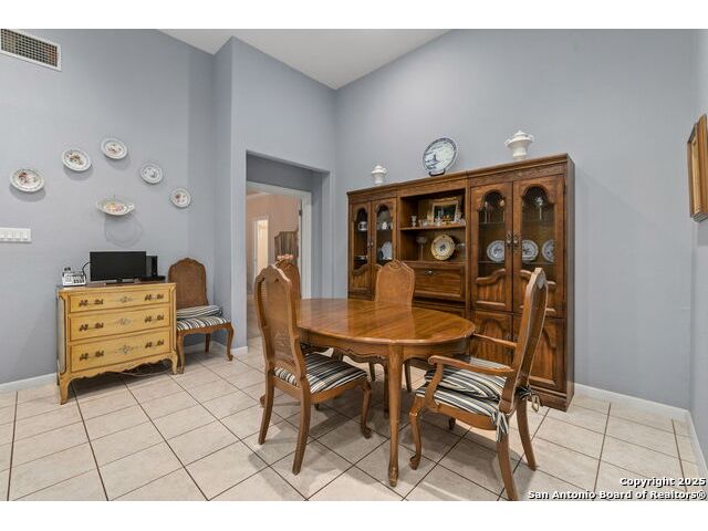 Nestled in the prestigious Gardens at The Dominion, this impeccably maintained one-story home offers both convenience and timeless charm. Located on a greenbelt, it provides privacy and a peaceful setting, all with easy access through the North guard gate. Inside, soaring ceilings enhance the spacious feel throughout, while the expansive kitchen provides ample cabinetry and counter space, ideal for everyday living and entertaining. The home features abundant built-ins and custom touches, creating a seamless blend of function and elegance. The primary suite is oversized, along with dual walk-in closets, and separate vanities-a true retreat. The two additional bedrooms are located at the front of the home. Outdoors, professionally landscaped grounds elevate the home's curb appeal along with the added serenity of the greenbelt backdrop. This home is larger than what BCAD reflects, offering exceptional value in one of San Antonio's most sought-after communities. Located just minutes from IH-10, Loop 1604, The Rim, and La Cantera, you're never far from premier shopping, dining, and entertainment. A variety of membership options available at The Dominion Country Club.