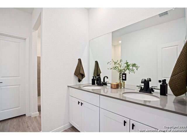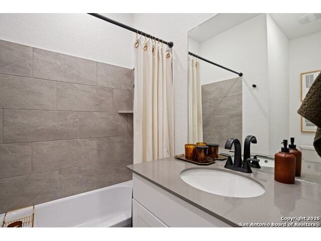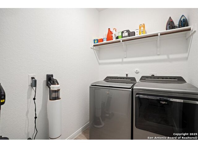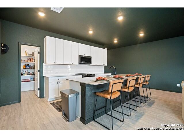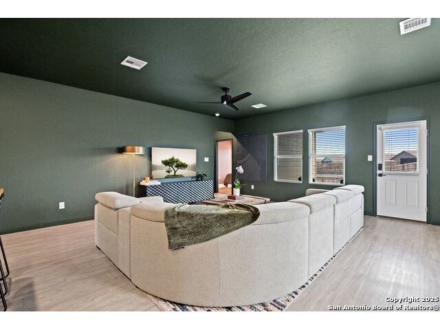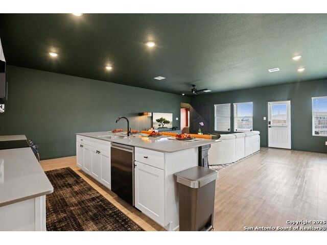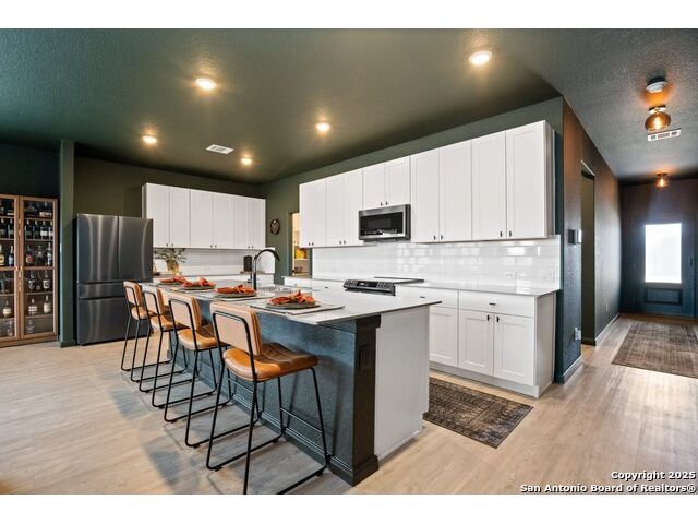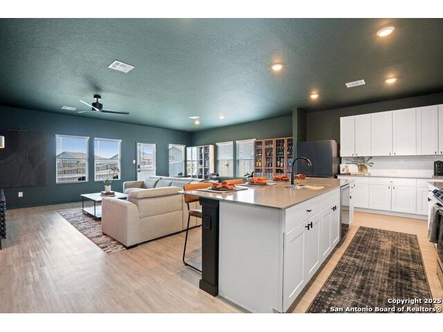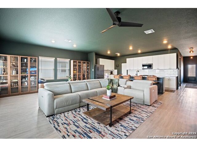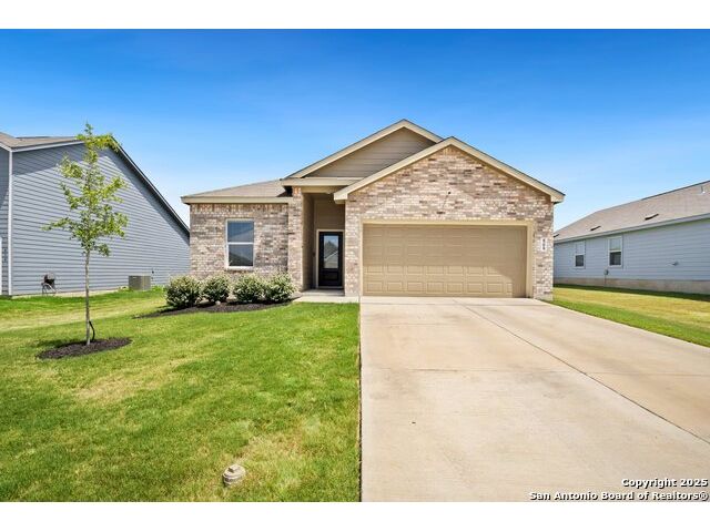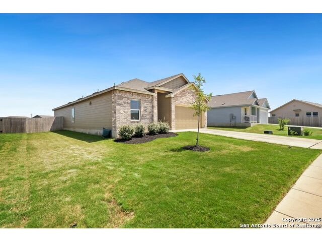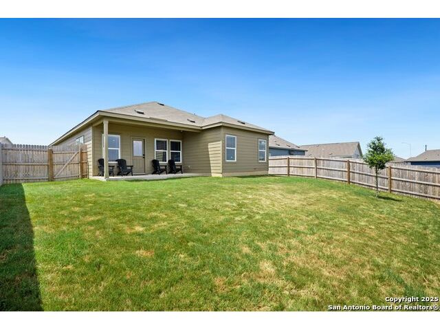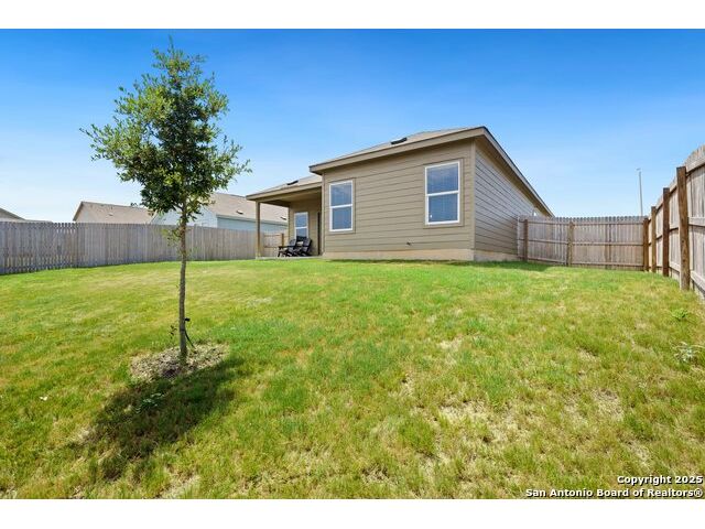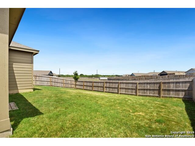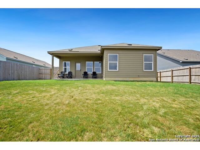Gorgeous 1-story home in the community of Sky Valley offering comfort, convenience, and thoughtful updates. This 3-bedroom, 2-bath property features a spacious open floor plan designed for everyday living and entertaining. The large open island kitchen includes a breakfast bar, Bespoke dishwasher, range, refrigerator, microwave, walk-in pantry, ample cabinetry, and generous counter space, all open to the living area for easy interaction. The split primary bedroom offers backyard views and a full bath for added privacy. Notable features include updated hardware, a security system with cameras, an automatic garage door opener with camera, whole-home water softener, smart deadbolts, and a Nest thermostat. The fenced backyard is ideal for pets and gatherings, with a covered patio and expansive lawn space. Located near the Guadalupe River, with easy access to TX-46, shopping, and more. Schedule your tour today!