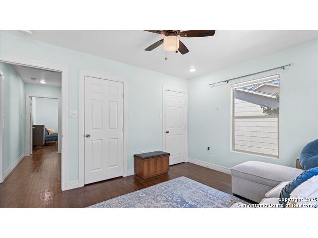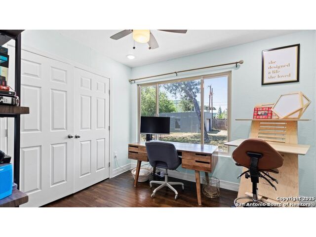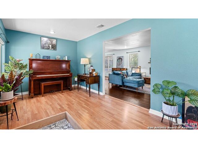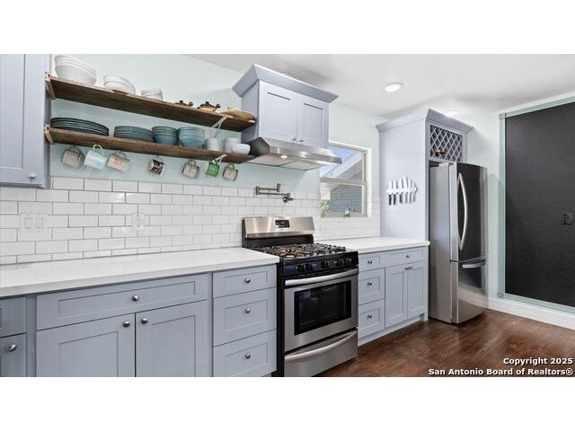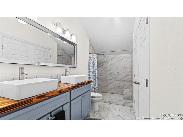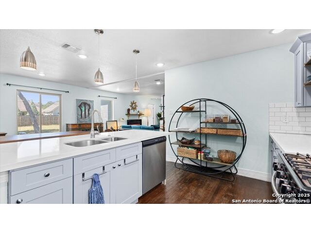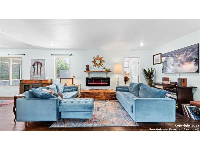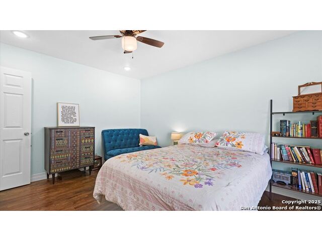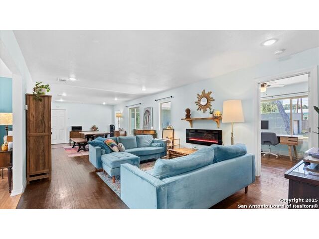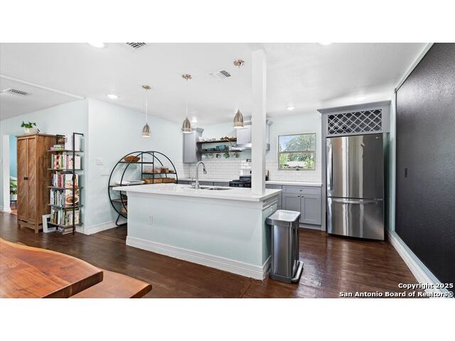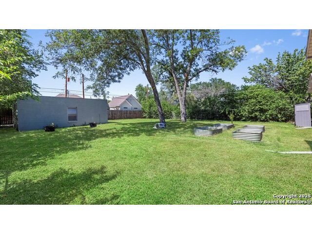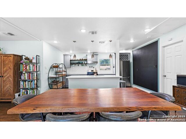 NO HOA!! Large Lot just over 1/4 acre Lot! Home features four bedrooms with two full and one half baths. Large windows throughout make every inch of this home feel light and bright, though overhead recessed lighting throughout will brighten even the darkest of winter days. Master Ensuite with twelve-foot vaulted ceiling will easily accommodate king sized furniture with room to spare for casual seating in a recessed alcove and airy windowed view. Spacious attached primary bath includes uniquely beautifully torched butcher-block vanity, double raised vessel sinks, waterfall shower and generously sized customizable walk-in closet. Second full bath includes original, though recently reglazed, cast iron tub and full shower. Kitchen is light and airy with white subway tiled backsplash, gas stove and overhead pot filler, stunning quartz countertops throughout, large island for meal prep and gatherings, and recent stainless steel appliances. Restored hardwood flooring throughout whole of home boasts warmth and character, and are fully supported by carefully maintained pier and beam foundation. Utility room and half-bath sit on an adjoining slab foundation. Bedrooms are generously sized and all have ceiling fans. Solar panels offer wireless monitoring and service via smartphone app, and include transferable warranty. Gutters with leaf-guard covers installed in 2021 on home and detached garage. Electrical in home and garage was upgraded in 2021, to include full home surge protector, and 220 panel in garage for large power-draw equipment. Five-ton HVAC with whole home air balancing in place to ensure even heating and cooling throughout, even on the hottest of Texas days. New double pane windows throughout. Sentricon Termite System. Outdoor tankless gas water heater, outdoor enclosed whole home water softener, and new plumbing throughout. Large enclosed backyard offers shade from two mature and recently pruned pecan trees, newly planted black walnut, one orange and two pear trees - all cared for and nourished by a local arborist. Garden area set apart with four raised Birdie Beds perfect for the organic conscious home gardener, with existing compost pile already begun. Active neighborhood association regularly coordinates summer movie nights, block parties, and casual get togethers. Neighborhood is dog friendly with active outdoor community. Alamo Quarry Market and Pearl shopping are all easily within a ten-minute drive. Quick access to San Antonio International Airport, and SAMMC/BAMC. 2021 LG kitchen refrigerator may convey if desired. Custom window roller shades throughout home will convey.