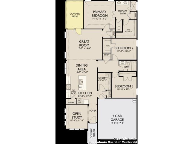 Charming one story home with gourmet kitchen. Spacious family roomwith large windows looks out onto the backyard. A secluded primary suite features a private bath with an oversized shower, double vanities, and a walk-in closet. Twi secondary bedrooms with walk in closets and a shared bathroom. A private study is perfect for working from home or daily planning in peace. Covered patio and sprinkler system.