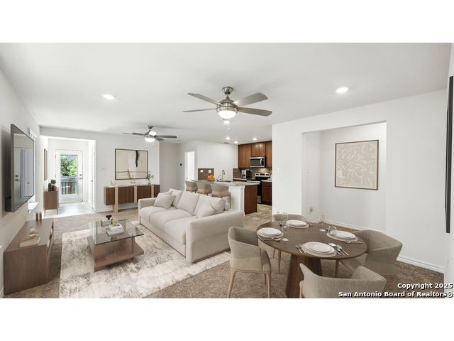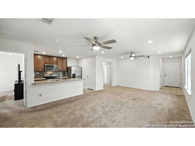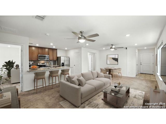 Unlock Big Savings: Seller open to help with closing costs or other buyer incentives. Welcome to this like-new, upgraded 4-bedroom (or 3 + office) smart home! With over $22,000 in builder upgrades, this home combines comfort, functionality, and style Step inside to an open layout filled with thoughtful features-upgraded Whirlpool stainless steel appliances, a sleek kitchen backsplash, an included refrigerator and tiled walk-in shower in the primary suite (no tub), upgraded. You'll also find LED lighting with dimmers, ceiling fans in every room, extra electrical outlets, and a water filtration system. Smart living includes a Wi-Fi-enabled garage door opener, smart thermostat, pre-plumbing for a water softener and garage utility sink, and the KB Connect Package-providing whole-home network coverage for seamless streaming and connectivity. Conveniently located in walking distance to the community pool and top-rated schools, a new sports complex. This home is move-in ready and future-focused. Don't miss your opportunity to own this well-appointed home in one of New Braunfels' fastest-growing areas! Please note, correct elementary school is Legend Point Elementary.