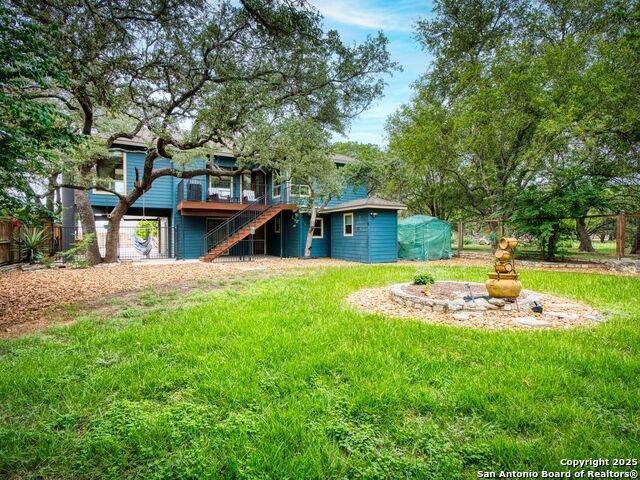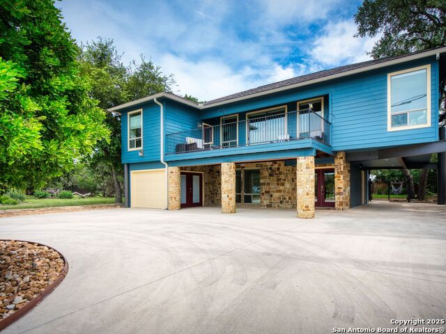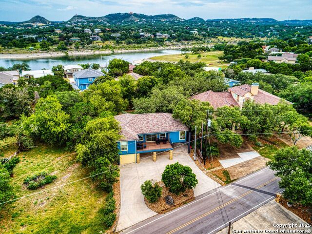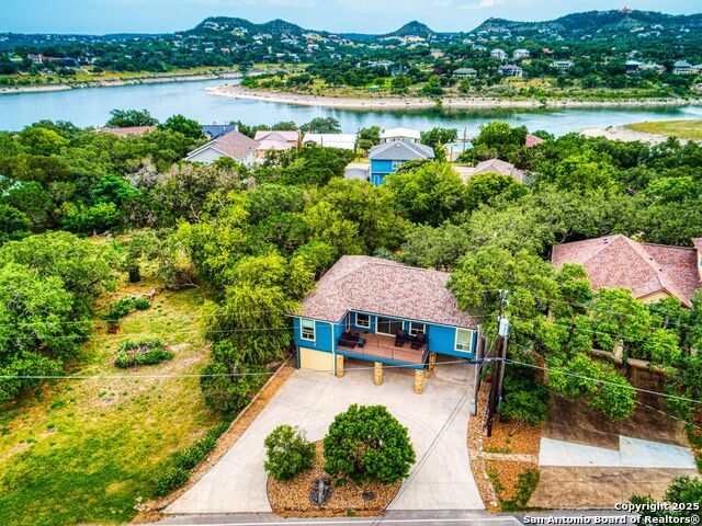 Experience lake living at its finest in this beautifully updated Canyon Lake retreat, just steps from Boat Ramp 2 in the highly desirable Canyon Lake Village West community. This home is steel constructed and designed to showcase its incredible lake views with an elevated reverse floor plan that maximizes the scenery from the main living areas and upstairs bedrooms. The property can be enjoyed as a full time residence or a short term rental investment. Step out onto the expansive front balcony and take in the panoramic blues of Canyon Lake, perfect for morning coffee or sunset gatherings. The back balcony offers a peaceful setting overlooking a fully fenced yard. Inside, you'll find an inviting open concept layout featuring a bright and airy living, dining, and kitchen space with soaring ceilings and abundant natural light. The primary suite opens directly onto the front balcony and includes a spacious walk in closet, dual storage options, and a private ensuite bath. Two additional bedrooms are connected by a Jack and Jill bath, with one also offering balcony access. Downstairs, a private elevator takes you to a flexible fourth bedroom or secondary living area. The space is complete with its own bathroom, a coffee bar, and direct outdoor access. Additional highlights include a newer roof, updated flooring downstairs, and full community amenities including a pool, tennis courts, park, and a clubhouse. Whether you're looking for a serene getaway, an Airbnb investment, or a full time residence, this home offers it all. Just minutes from Whitewater Amphitheater, the Guadalupe River, and the charming towns of New Braunfels, Wimberley, and San Antonio.