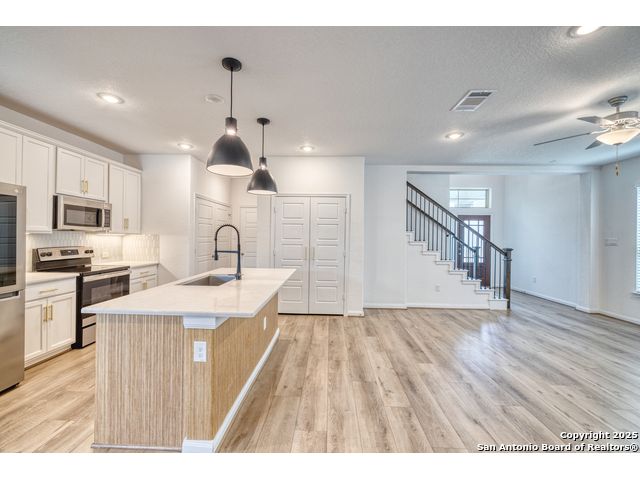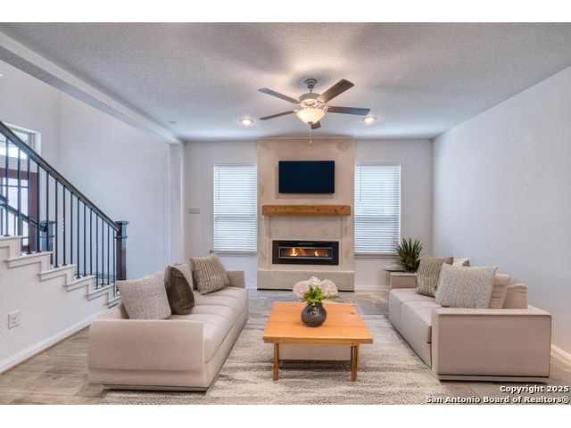 Beautifully maintained 4-bedroom, 2.5-bath home in the desirable Overlook at Creekside subdivision. Built in 2022, this two-story home offers an open-concept layout with abundant natural light, a spacious kitchen with center island, and a versatile upstairs game room. The primary suite features a walk-in closet and ensuite. Additional highlights include a water softener system, sprinkler system, two-car garage, and energy-efficient construction. Conveniently located near I-35 with easy access to shopping, dining, entertainment, and medical facilities. Located in Comal ISD.