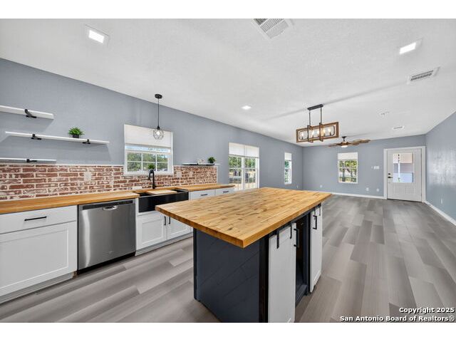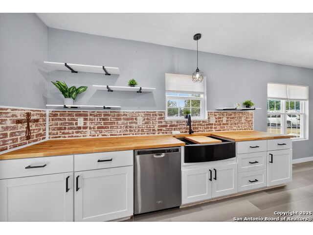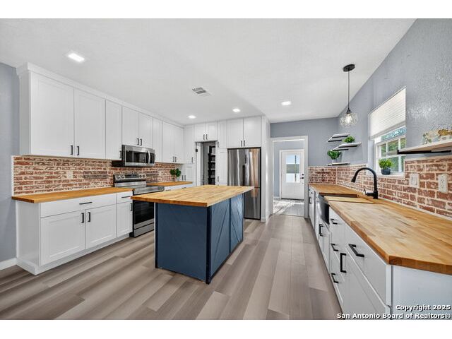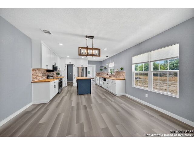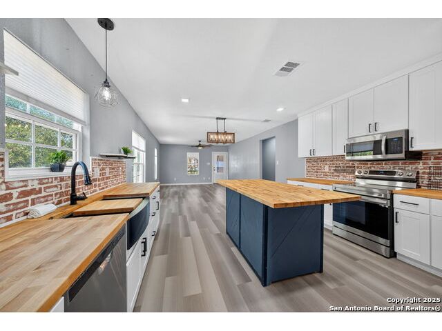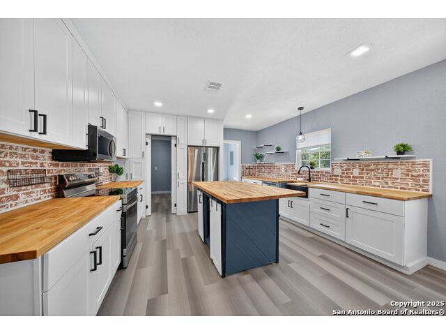 Step into this stunning fully remodeled home, perfectly tucked away at the end of a quiet cul-de-sac. Every detail has been thoughtfully curated-from the fresh paint and updated flooring to the modern finishes that flow seamlessly throughout. The light-filled open floor plan creates an inviting space for both everyday living and entertaining. The show-stopping kitchen is a true centerpiece, featuring rich butcher block countertops, a spacious center island, sleek stainless steel appliances, and a charming brick backsplash that adds warmth and character. Retreat to the serene primary suite, complete with a spa-like bath boasting a freestanding soaking tub and a separate walk-in shower. Additional rooms offer flexibility for guest space, a home office, or hobbies, all served by a beautifully updated full bath. Outside, relax on the welcoming covered front porch, enjoy the generous yard dotted with mature trees, and imagine endless possibilities for outdoor gatherings. With its blend of modern upgrades and timeless charm, this home delivers the perfect mix of style, comfort, and small-town living.