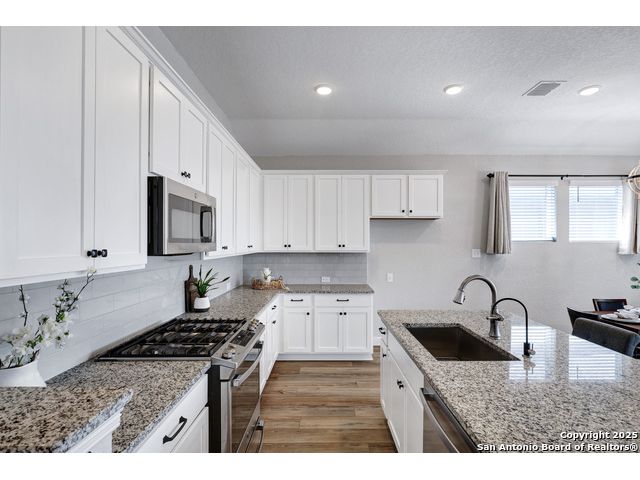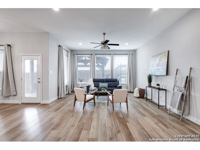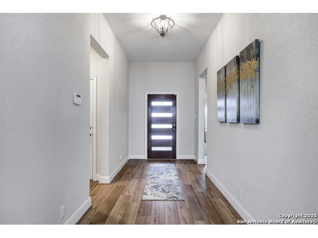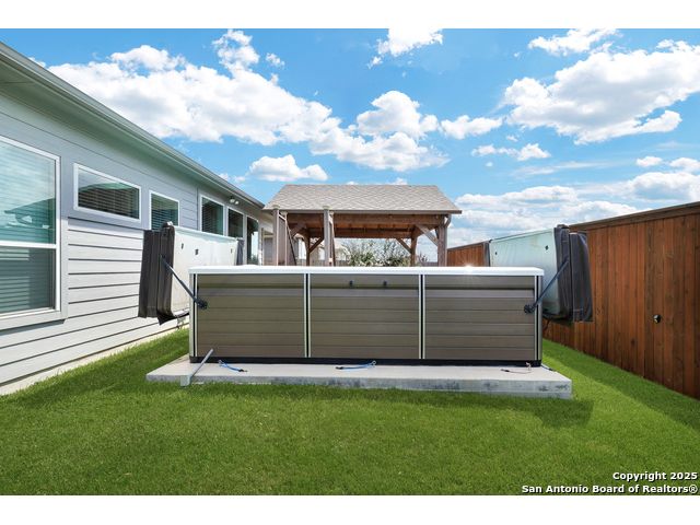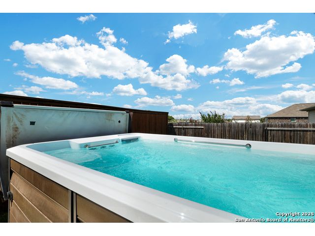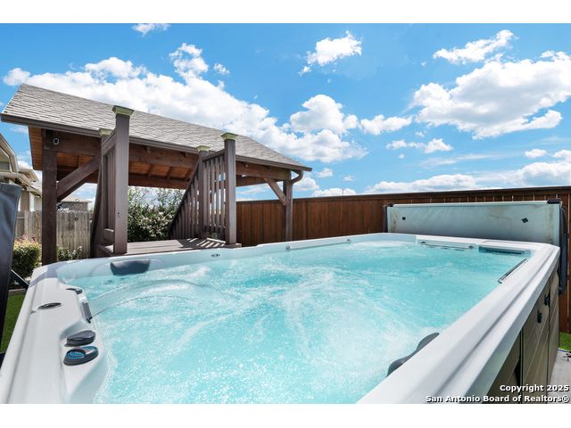 Stunning Like-New One-Story Home with Swim-Spa & No Back Neighbors! Welcome to this beautifully maintained and thoughtfully upgraded 3-bedroom, 2-bath home with flex space that can serve as a 4th bedroom (includes closet), game room, or office. Nestled in a quiet neighborhood with no rear neighbors, this home is perfect for both relaxation and entertaining. Step inside to find new luxury vinyl flooring, updated light fixtures, and a versatile layout that includes a formal dining room, breakfast nook, and a large open floor plan. The primary suite features vaulted ceilings and a luxurious upgraded bathroom complete with a large walk-in shower, dual vanities, and plenty of storage. The heart of the home is the stylish kitchen, outfitted with a brand-new dishwasher and microwave, a central island, bar seating, gas cooking, and an upgraded stove - perfect for any home chef. Step outside to your entertainer's dream backyard featuring not only the original covered patio but also a huge extended covered patio with sun curtains and enjoy the custom Swim-Spa, perfect for cooling off or relaxing after a long day. Additional highlights include a full sprinkler system, added in-ground electrical in the backyard, added gutter system, overhead garage storage racks, water softener, and meticulously maintained landscaping in front and back yards. This move-in ready home blends comfort, functionality, and outdoor enjoyment - a rare find with so many upgrades already in place.