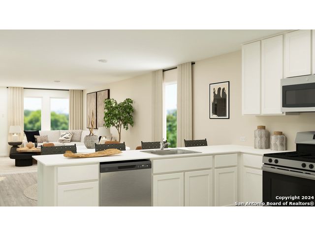 The Timms - This convenient single-story plan opens to three secondary bedrooms framing the entryway. Down the hall, an open peninsula-style kitchen overlooks an inviting dining area and a spacious family room, ideal for seamless modern living. The owner's suite is ideally situated in the back corner to provide a serene retreat, featuring a bedroom, attached bathroom and a walk-in closet. Prices and features may vary and are subject to change. Photos are for illustrative purposes only.