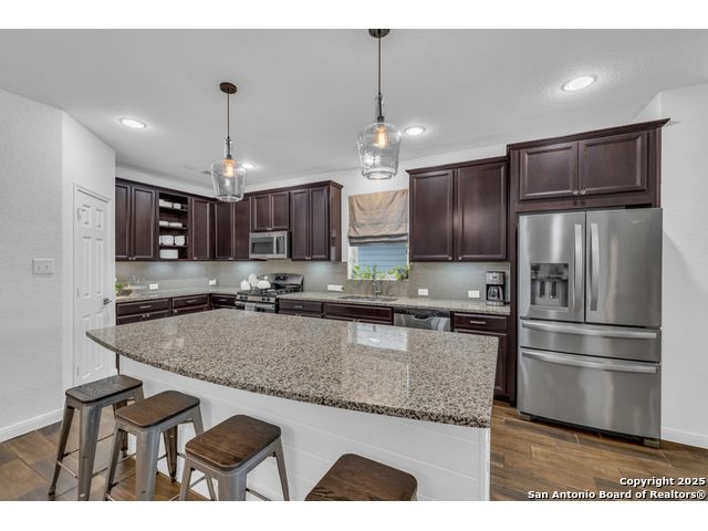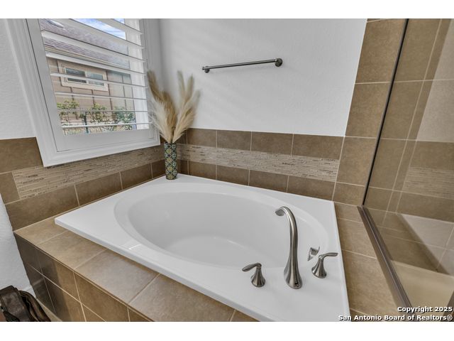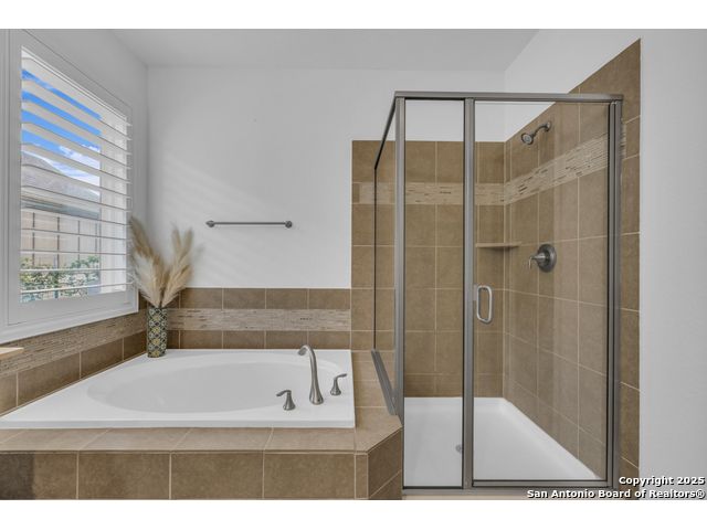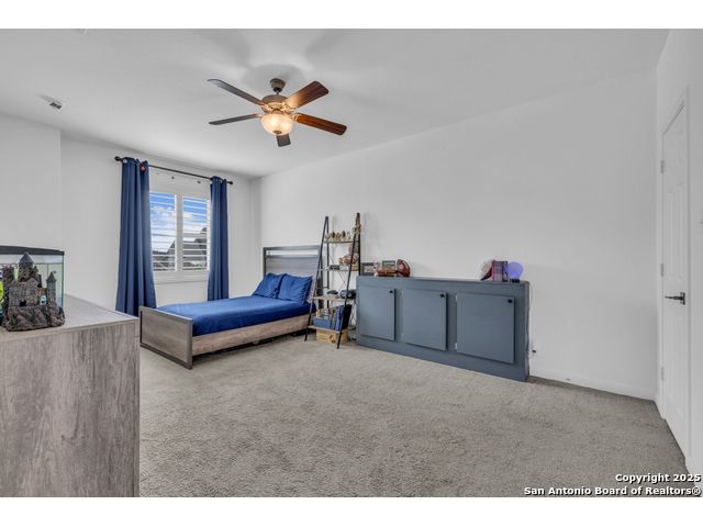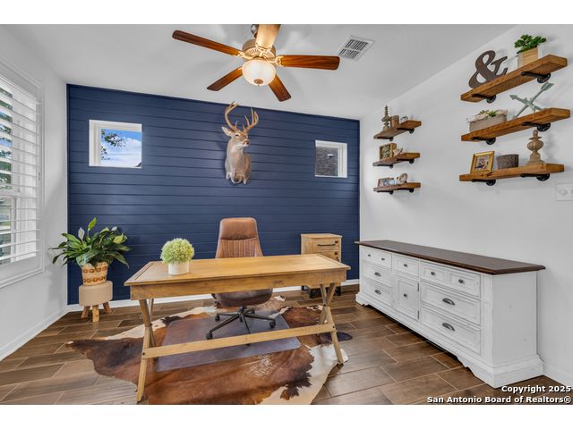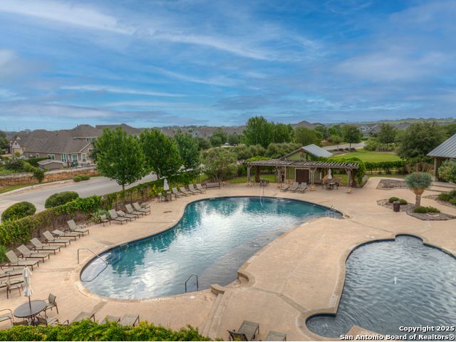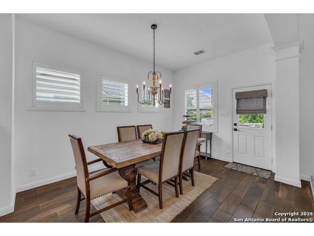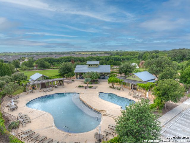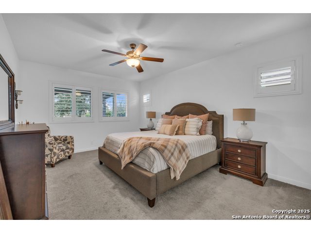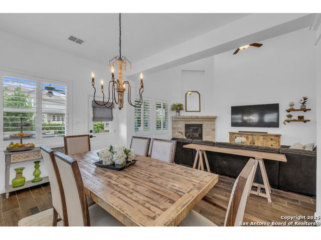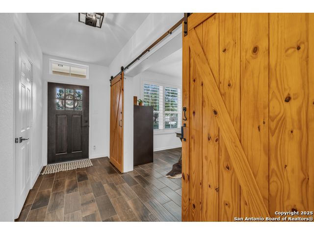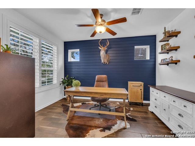 Nestled within the exclusive Crossvine community, this well maintained residence boasts an open-concept design, featuring soaring 20-foot ceilings in the family room, beautifully accentuated by a striking stone fireplace. The kitchen is both stylish and functional, with granite countertops, stainless steel appliances, a gas stove, and a generously sized island that seamlessly flows into the living area, making it an ideal space for entertaining. The main level is home to a spacious owner's suite, offering ultimate comfort with a spa-like bath, a walk-in shower, and an expansive closet. A dedicated home office, with a custom barn door entrance, provides the perfect balance of privacy and style for work or study. Additionally, a well-appointed mud room ensures convenience and organization upon entering the home. Upstairs, three generously proportioned bedrooms and a versatile game room await. Throughout the home, custom plantation shutters add a touch of refined elegance, complementing the home's timeless design. Step outside to an entertainer's paradise, where an extended covered patio includes a fully equipped outdoor kitchen-complete with a gas grill, sink, and built-in cooler. Enhanced landscaping ensures privacy, while a covered pergola and remote-controlled sunshades elevate the outdoor experience. As a resident of Crossvine, you'll enjoy access to an array of world-class amenities, including a resort-style pool, a sophisticated events pavilion, and a multipurpose outdoor amphitheater. The community also features a meticulously planned hike and bike trail system, community greenbelts & open fields, and serene pocket parks. For fitness and wellness enthusiasts, there is an exercise course and multiple tranquil ponds & water features. Residents also have the pleasure of enjoying lending libraries and easy access to the City of Schertz Heritage Oaks Park. The future Town Center will offer even more convenience and luxury. This master-planned community is ideally located near schools, as well as premier shopping, dining, entertainment, and Randolph Air Force Base-making it the ultimate blend of sophistication and convenience.