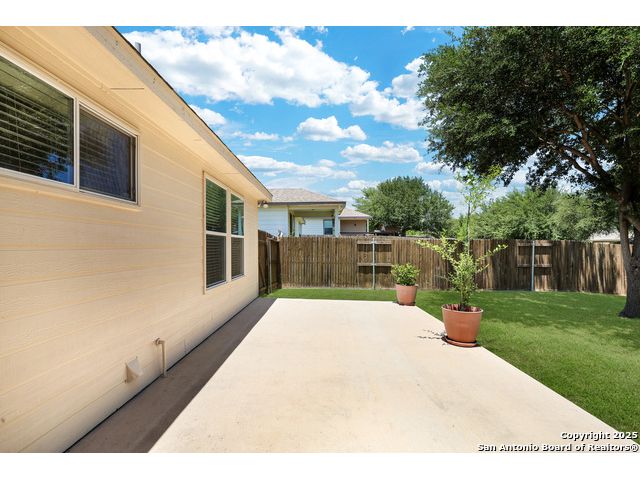 Welcome to Rosebud Vista in Retama Springs! This single-story home is move-in ready and features a spacious, open layout. The living room flows seamlessly into the dining and kitchen areas, perfect for both everyday living and entertaining. The oversized master bedroom offers comfort and privacy, while two additional well-sized bedrooms provide plenty of space for family, guests, or a home office. Step outside to a west-facing backyard with mature trees and an extended patio,ideal for enjoying evenings outdoors. Conveniently located near Randolph AFB, Ft. Sam Houston, IKEA, The Forum, and a variety of shopping and dining options.