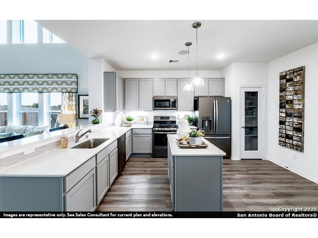 Our grandest home in the Cobalt Series, the Trinity floor plan boasts an impressive two-story floor plan that is sure to suit most any lifestyle. Upon entry, you are first greeted by the private study room that also has the option of transforming into a fifth bedroom if you would rather have the space for more guests to visit. Next, you will find the access to your convenient downstairs powder room, a walk-in utility room, as well as the entry to your two-and-a-half-car garage. Needing more storage for another car? Opt to swap your standard two-car garage for a sizable three-car garage! Down the hall, you will reach the heart of your home - the massive, two-story family room with soaring ceilings and consisting of plenty of natural light. Opening up to the family room is the convenient adjoined kitchen and breakfast area with access to your optional extended covered patio. Your elegant kitchen comes fully equipped with industry-leading appliances, sleek granite countertops with a ceramic tile backsplash, designer light fixtures, and the option to put in an island and extra cabinets if you desire more counterspace. With features like these, you will want to cook every meal! Completing the first floor is your secluded Master suite with your master bathroom containing the cultured marble countertops with option of dual vanities, a shower/bathtub enclosure, and a huge walk- in closet. Upgrade your bathroom space to include a master luxury bath with stand alone shower or a master super shower instead! Both options come with standard dual vanities for your convenience. Finally, up the stairs you will discover a fantastic game room perfect for hosting the ultimate game night, as well as the second, third, and fourth remaining bedrooms. The full secondary bathroom also lies upstairs between the second and third bedrooms. The Trinity has the perfect amount of space for the entire family. You won't compromise your comfort and functionality in the Trinity floor plan!