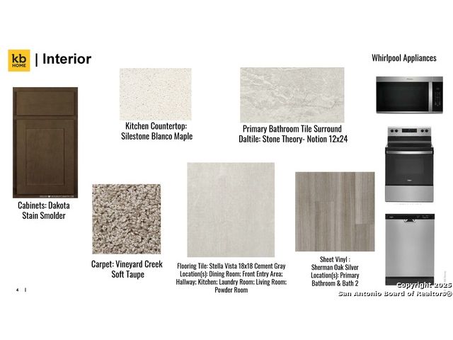 Step into style and comfort with 9-ft. first floor ceilings and modern finishes throughout. The kitchen boasts Woodmont Dakota Shaker panel 42-in. upper cabinets, Whirlpool stainless steel appliances, a Daltile tile backsplash, Silestone countertops in Blanco Maple, and an extended breakfast bar. The primary bath offers upgraded cabinets and a 42-in. garden tub/shower with Daltile tile surround. Decorative touches include a Carrara-style entry door, Kwikset Polo knob hardware, and Stella Vista ceramic tile flooring in the kitchen and great room. Enjoy a soft water loop, wireless security system, covered patio, fully sodded yard, and automatic sprinkler system.