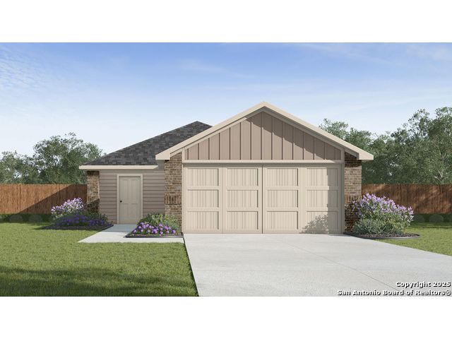 The Atlanta is a charming one-story home featured at Applewood in San Antonio, TX. Featuring 2 classic front exteriors, this 3 bedroom, 2 bathroom home also offers 1156 square feet of living space and a 2-car garage. A front porch (per plan) welcomes you into the home and opens to the gourmet kitchen which includes quartz counter tops, quality cabinets, stainless steel appliances and an open concept floorplan with the kitchen flowing seamlessly into the dining room and living room. The main bedroom has an attractive ensuite bathroom that features a quartz vanity countertop and quality cabinetry. Enjoy additional storage with a spacious walk-in closet located off of the primary bathroom. Your secondary bedrooms all feature quality carpet flooring and a closet, and can be used as bedrooms, offices, work out spaces or other bonus rooms. The possibilities are endless with The Atlanta floor plan. Additional features include sheet vinyl flooring in entry, living room, and all wet areas, quartz counter tops in all bathrooms and HOME IS CONNECTED base package. Using one central hub that talks to all the devices in your home, you can control the lights, thermostat and locks, all from your cellular device.