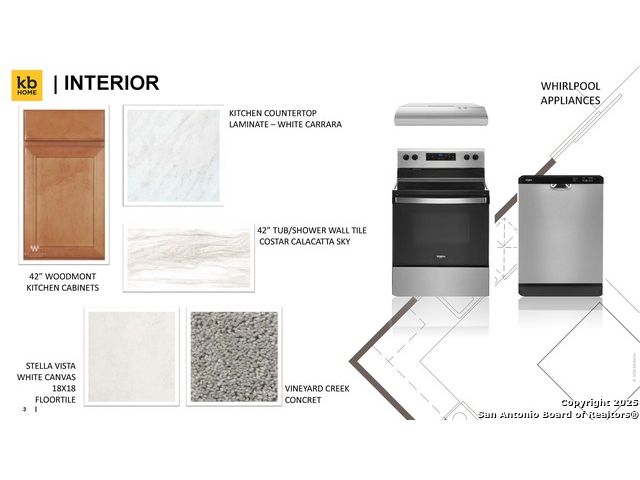 This beautifully appointed home offers 9-ft. first floor ceilings and a spacious, open feel. The kitchen showcases Whirlpool stainless steel appliances, Woodmont Cody 42-in. upper cabinets, granite countertops in Arctic Pearl, and an extended breakfast bar perfect for casual dining. The primary bath features a raised vanity, upgraded cabinets, and a 42-in. shower with a Daltile tile surround. Decorative touches include a striking Texas Star entry door, Kwikset Polo interior hardware, Shaw carpet in the bedrooms, and costar ceramic tile flooring in the bathrooms, kitchen, and great room. A wireless security system, fully sodded yard, and automatic sprinkler system add convenience and peace of mind.