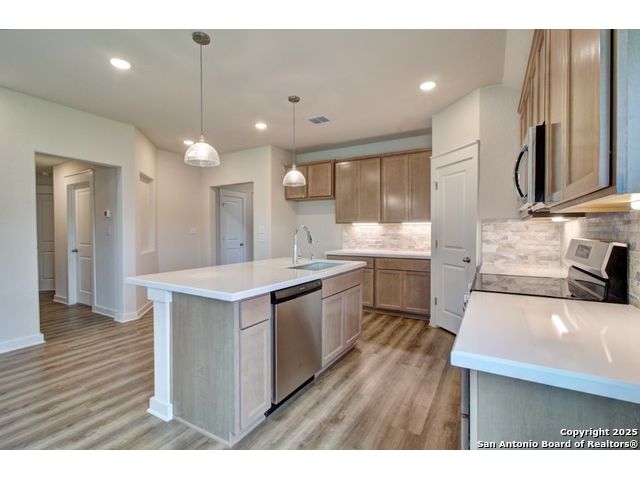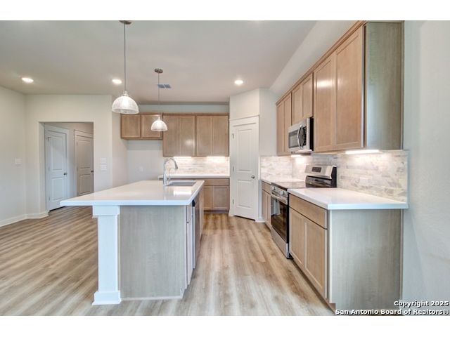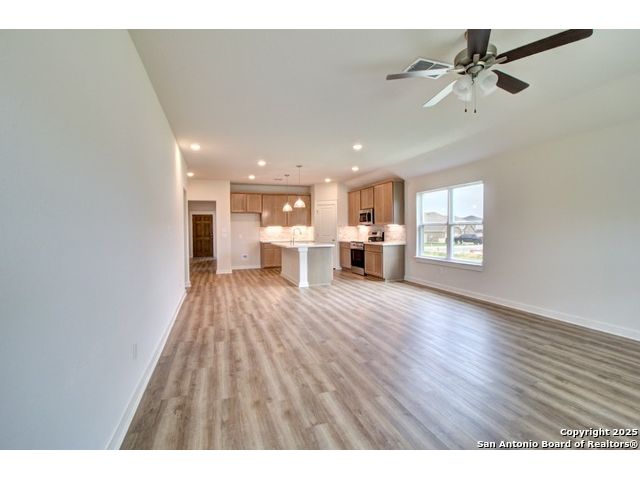 Welcome to Westridge. This beautiful single story Kimbell plan by DRB Homes offers 1,977 square feet of functional living space with 4 bedrooms, 2 bathrooms, and a private study with ceiling fan, perfect for working from home. Just off the entryway, you will find a secondary bedroom, coat closet, and the study. The open concept kitchen flows into the dining and living areas and features stainless steel gas appliances, Omegastone countertops, a center island with undermount sink, and plenty of cabinet space. The spacious owner's suite is located at the back of the home and includes dual vanities, a private water closet with door, ceramic tile shower, and an enlarged walk in closet. Exterior features include classic brick masonry, a 2 car garage, covered porch, full sprinkler system, and privacy fence. The Westridge community will include a pool, pickleball court, and playground. This home blends comfort, design, and convenience. Schedule your showing today.
