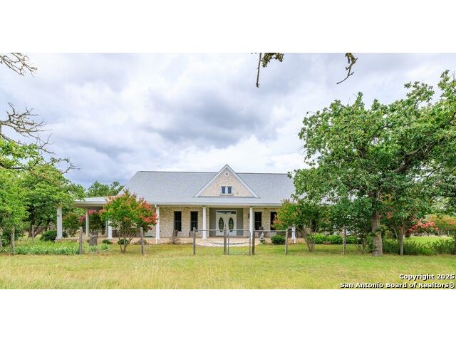 30 acre Hill Country retreat is nestled in the heart of the Texas Hill Country. The property offers the perfect balance of comfort and functionality, with easy access to Fredericksburg. Property has two homes. The main residence was built circa 2001 and spans 3492 square feet (per GCAD). The custom-built stone and stucco home exudes warmth and quality craftsmanship. Inside you'll find 4 bedrooms and 3 baths (Note: 4th bedroom is upstairs and does not have a closet), dedicated office space, expansive great room with fireplace, spacious kitchen with center island, abundant cabinetry, generous walk-in pantry, and oversized-attached 2 car garage. The layout was thoughtfully designed with high-quality finishes throughout. One of the home's standout features is its wide, full-length front porch-ideal for relaxing and enjoying the fresh Hill Country breeze. Second home is set a comfortable distance from the main residence. It was built in 1998 and offers approximately 1686 square feet (per GCAD) of brick construction. Home features 2 bedrooms, 2 baths, cozy living room with fireplace, wide full length front porch, detached oversized 2 car garage, Perfect as a guesthouse, multigenerational living space, or income-producing rental. Additional improvements include a large metal workshop building with attached carport/shed, barn suitable for livestock, feed, and equipment. Another attribute is the land having an agriculture property tax exemption. This rare and well-appointed property offers a unique blend of rural serenity and modern convenience which is ideal for those seeking space, flexibility, and opportunity in a prime Hill Country location.