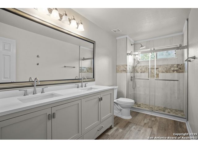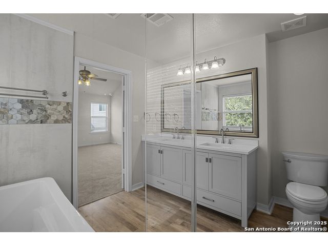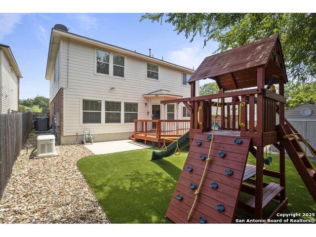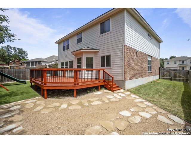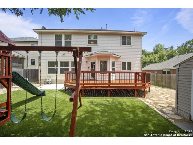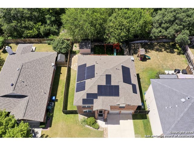 Welcome to 9515 Braun Shore, a beautifully updated and meticulously maintained home located in the highly desirable Braun Willow community of San Antonio, Texas. This spacious 3-bedroom, 2.5-bathroom residence offers 2,854 square feet of stylish living space, thoughtfully designed for comfort, functionality, and effortless entertaining. As you enter, you're welcomed by a formal living room and dining area, ideal for hosting family gatherings or dinner parties. Toward the heart of the home lies a stunning island kitchen, renovated in 2019, featuring black stainless steel appliances, ample cabinetry, and abundant countertop space that will delight any home chef. Upstairs, a large loft bathed in natural light offers the perfect flex space for a home office, media room, or play area. The oversized primary suite provides a true retreat, complete with a spa-like ensuite bathroom fully renovated in 2023. This luxurious space includes a deep soaking tub, a separate walk-in shower, dual vanities, and a generous walk-in closet. The secondary bedrooms are equally spacious, while the renovated half bath adds both convenience and style. Energy efficiency and peace of mind come standard here thanks to fully paid-off solar panels, a Generac generator, a new HVAC system installed in 2018, a water heater from 2016, and a new roof added in 2017. Fresh carpeting was also installed in 2025, ensuring the home feels modern and move-in ready. Step outside to your private backyard oasis, where a large wooden deck provides the ideal setting for outdoor dining and entertaining. The yard includes a children's playset, a storage shed, and is fully fenced with direct access to a tranquil greenbelt-perfect for those who appreciate space, privacy, and nature. The home also features a two-car garage with an EV charger, catering to today's eco-conscious buyers. This established, tree-lined neighborhood is also part of the acclaimed Northside Independent School District and offers close proximity to local parks, dining, shopping, and major San Antonio attractions. With modern upgrades, energy-efficient features, and a location that blends peaceful living with city convenience, 9515 Braun Shore is the perfect place to call home. Don't miss your opportunity to own one of the most thoughtfully improved properties in the area.