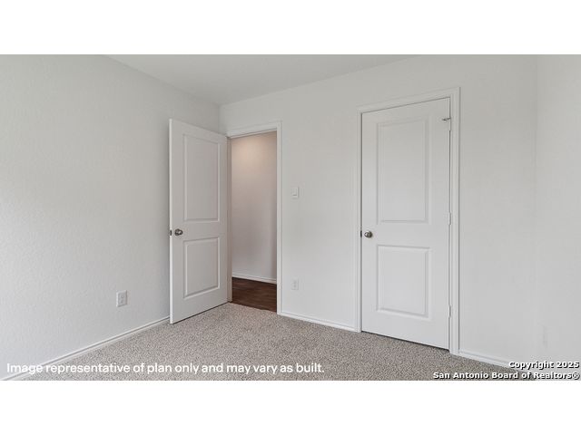 The Estero is a charming one-story home featured in Applewood in San Antonio, TX. Featuring 2 classic front exteriors, this 4 bedroom, 2 bathroom home also offers 1586 square feet of living space and a 2-car garage. A front porch (per plan) welcomes you into the home and opens to the gourmet kitchen which includes quartz counter tops, shaker style cabinets, stainless steel appliances and an open concept floorplan with the kitchen flowing seamlessly into the dining room and living room. The main bedroom has an attractive ensuite bathroom that features a quartz vanity countertop, shaker style cabinetry and a spacious tiled walk-in shower. Enjoy additional storage with a large walk-in closet in the primary bedroom. Your secondary bedrooms all feature quality carpet flooring and a closet, and can be used as bedrooms, offices, work out spaces or other bonus rooms. The possibilities are endless with The Estero floor plan. Additional features include sheet vinyl flooring in entry, living room, and all wet areas, quartz counter tops in all bathrooms and HOME IS CONNECTED base package. Using one central hub that talks to all the devices in your home, you can control the lights, thermostat and locks, all from your cellular device.