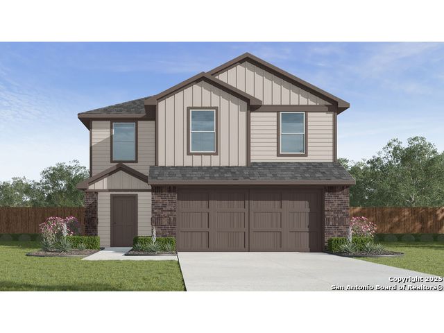 Welcome to The Davis, a two-story home located at Applewood in San Antonio, TX. This floor plan offers 2 classic exteriors and 2-car garage. Inside this 3 bedroom, 2.5 bathroom home, you'll find 1489 square feet of living space. The entry opens to a gourmet kitchen before flowing into the dining and family room with an open floorplan concept. The kitchen includes quartz counter tops, quality cabinetry, stainless steel appliances, large breakfast island, and pantry. Head up the stairs to find the main bedroom suite, all secondary bedrooms, the laundry room, and a full bath. The Davis layout is perfect if you love entertaining downstairs and relaxing upstairs. The private main bedroom features an attractive ensuite with quality cabinetry. A spacious tiled walk-in shower and large walk-in closet provide all the space and convenience you need. Additional features of The Davis floor plan include sheet vinyl flooring in entry, living room, and all wet areas, quartz counter tops in all bathrooms and HOME IS CONNECTED base package. Using one central hub that talks to all the devices in your home, you can control the lights, thermostat and locks, all from your cellular device.