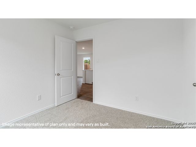 The Barton is a charming one-story home featured at Applewood in San Antonio, TX. Featuring 2 classic front exteriors, this 3 bedroom, 2 bathroom home also offers 1281 square feet of living space and a 2-car garage. A front porch (per plan) welcomes you into the home and opens to the gourmet kitchen which includes quartz counter tops, quality cabinets, stainless steel appliances and an open concept floorplan with the kitchen flowing seamlessly into the dining room and living room. The main bedroom has an attractive ensuite bathroom that features a quartz vanity countertop and quality cabinetry. Enjoy additional storage with a spacious walk-in closet located off of the primary bathroom. Your secondary bedrooms all feature quality carpet flooring and a closet, and can be used as bedrooms, offices, work out spaces or other bonus rooms. The possibilities are endless with The Barton floor plan. Additional features include sheet vinyl flooring in entry, living room, and all wet areas, quartz counter tops in all bathrooms and HOME IS CONNECTED base package. Using one central hub that talks to all the devices in your home, you can control the lights, thermostat and locks, all from your cellular device.