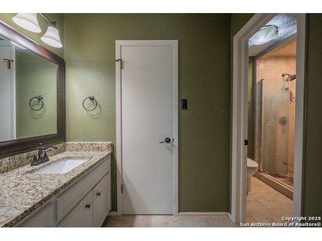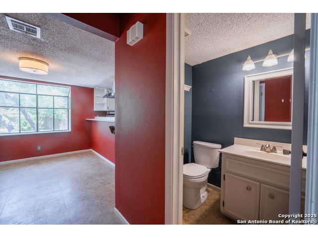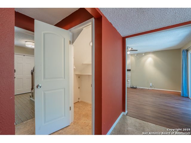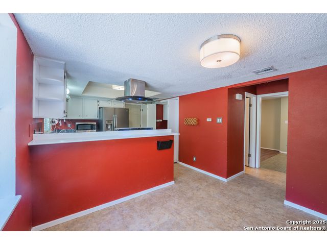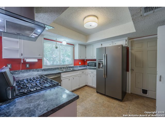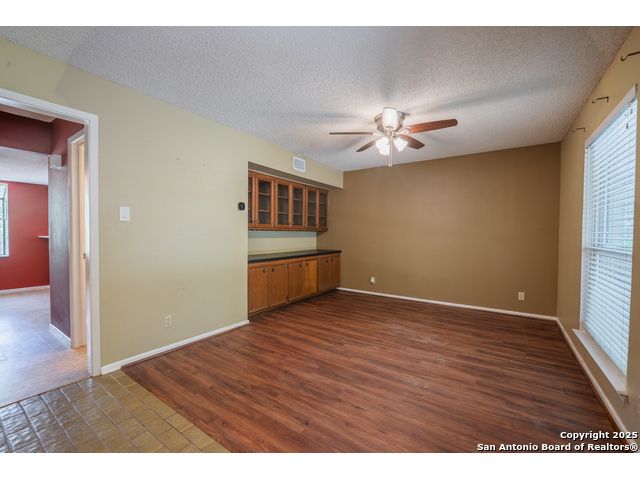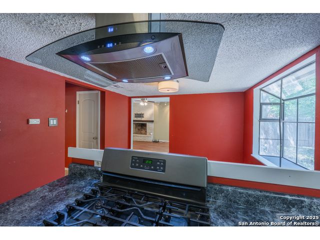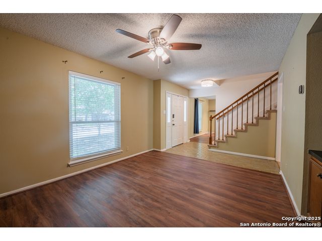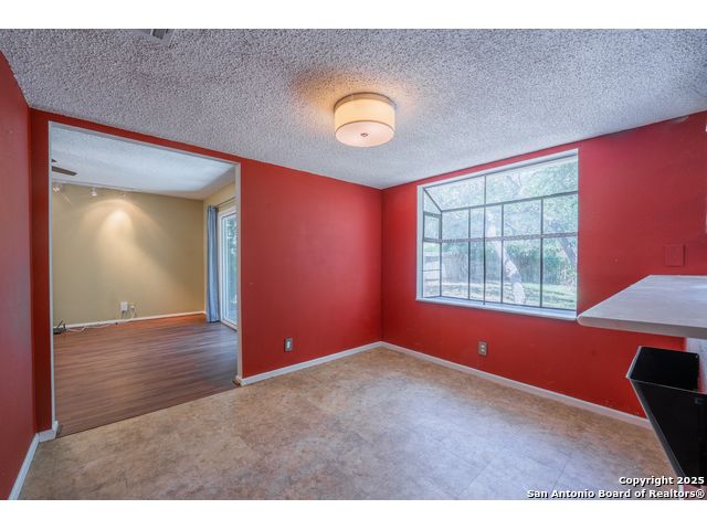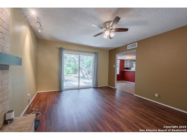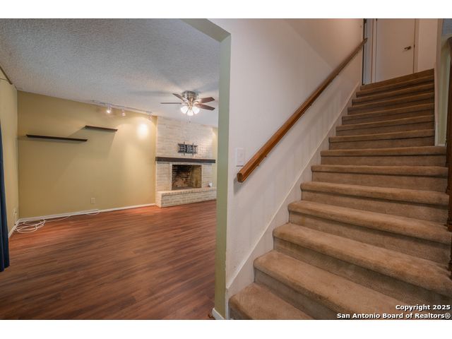 Charming 3-bedroom, 2.5-bath home in San Antonios Great Northwest community. Conveniently located near H-E-B, restaurants, trails, and walking distance to the neighborhood elementary school. Features a flex room with built-ins, updated half bath, and an open kitchen with GE appliances, gas range, and ceiling-mounted vent hood. Spacious living room offers a brick fireplace, luxury vinyl plank flooring, and backyard access. Upstairs includes two secondary bedrooms, full bath, and a large primary bedroom with remodeled en-suite. The shaded backyard offers space for relaxing, gardening, or play.
