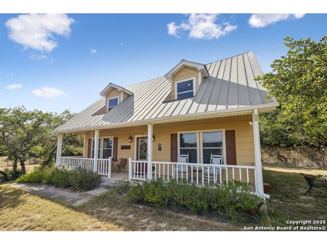 15-acre retreat in beautiful Bandera County! This thoughtfully designed 1,500 sq ft home features soaring vaulted ceilings and an expansive front porch spanning the entire length of the house - your personal sanctuary for morning coffee or evening sunsets while taking in breathtaking Hill Country views. HIGHLIGHTS THAT SET THIS PROPERTY APART: Spectacular panoramic views from nearly every room through strategically placed windows. Versatile loft space perfect for a master suite, guest quarters, or creative studio. Two comfortable bedrooms and full bathroom on main level, plus additional bathroom in loft. Inviting kitchen with breakfast nook for casual dining. Durable metal roofing for long-lasting protection. Large detached workshop/garage for all your toys, tools, or hobbies. Completely fenced property with dual gated access for privacy and convenience. Strategic gate placement separating home area from pasture land.Whether you're seeking your forever home away from city chaos or the ultimate weekend escape, this property delivers both serenity and accessibility. Wake up to Hill Country vistas, enjoy complete privacy on your own 15 acres, yet remain connected to modern amenities. This rare gem offers the space to breathe, the views to inspire, and the versatility to accommodate your lifestyle - from full-time country living to weekend warrior adventures. Don't miss this opportunity to own your piece of Texas Hill Country heaven!