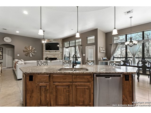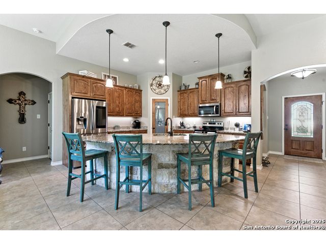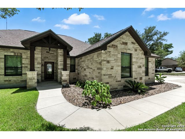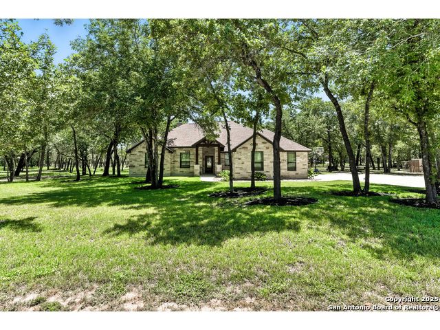 Welcome to this beautiful home in La Vernia, TX! Nestled on a quiet cul-de-sac, this beautifully crafted 4-bedroom, 2-bath rock and stucco home offers a peaceful retreat surrounded by mature trees and nature's charm. With 2,110 square feet of thoughtfully designed space, you'll feel right at home the moment you step through the front door. The heart of the home is a welcoming kitchen that features a spacious breakfast bar-perfect for casual meals, morning coffee, or late-night chats. The open layout creates a warm, connected feeling throughout, making it easy to gather with friends and family. Step outside and unwind under the canopy of trees on your serene back porch, ideal for quiet mornings or relaxing evenings. Whether you're sipping coffee at sunrise or enjoying a glass of wine as the sun sets, this peaceful setting is sure to become your favorite spot. With a 2-car garage, 4 comfortable bedrooms, and a layout that just feels right, this home is more than just a place to live-it's a place to truly settle in.