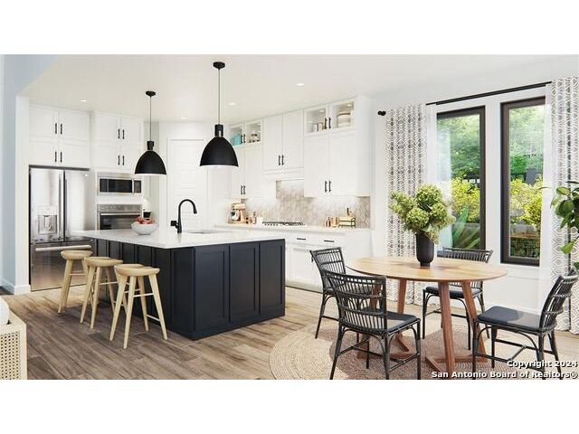 Welcoming entry and extended entry with 12-foot coffered ceiling. Spacious family room with a grand wall of windows opens to the kitchen and dining area. Island kitchen offers a walk-in pantry and built-in seating space. Dining area just off kitchen with walls of windows and a gorgeous backyard view. Secluded primary suite with a wall of windows. French doors lead to the primary bath with dual vanities, center garden tub, separate glass enclosed shower, a linen closet and two walk-in closets. Large game room with French doors. Secondary bedrooms with walk-in closets, utility room and a Hollywood bath complete this spacious design. Covered backyard patio. Mud room with additional storage just off the three-car garage.