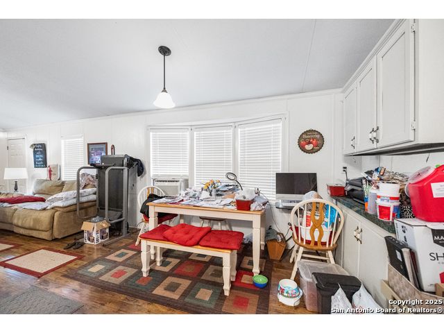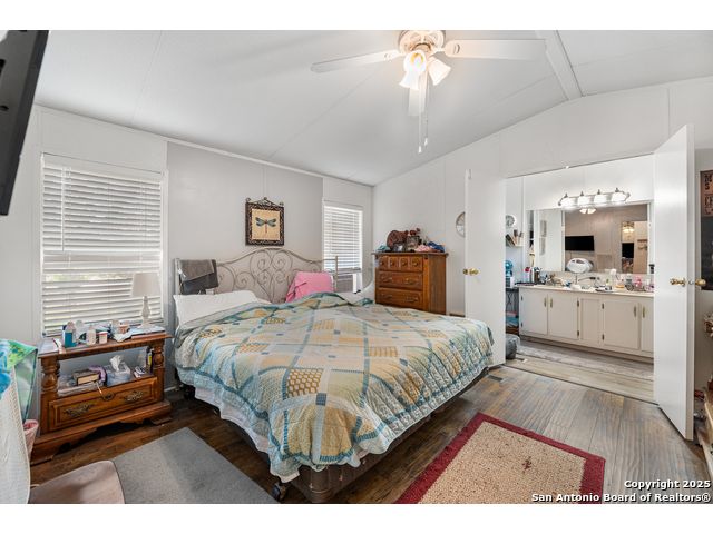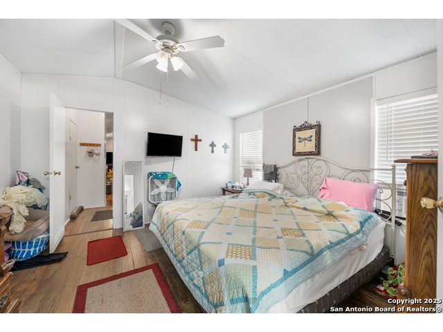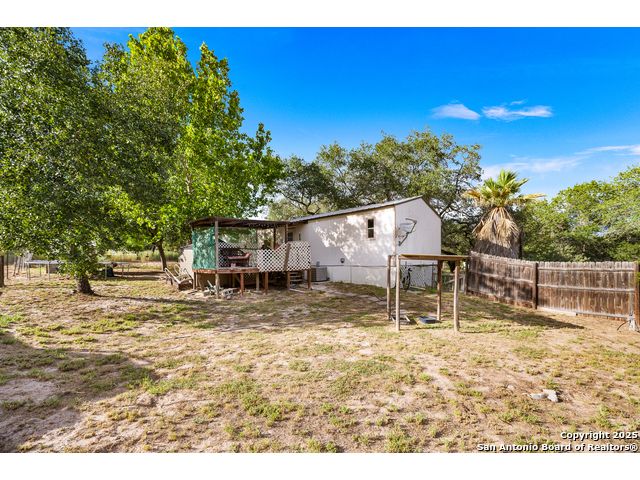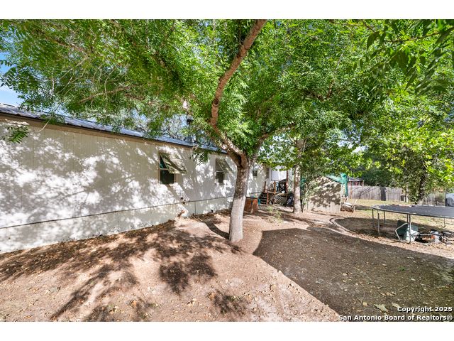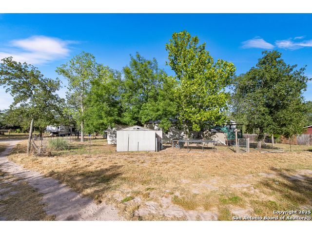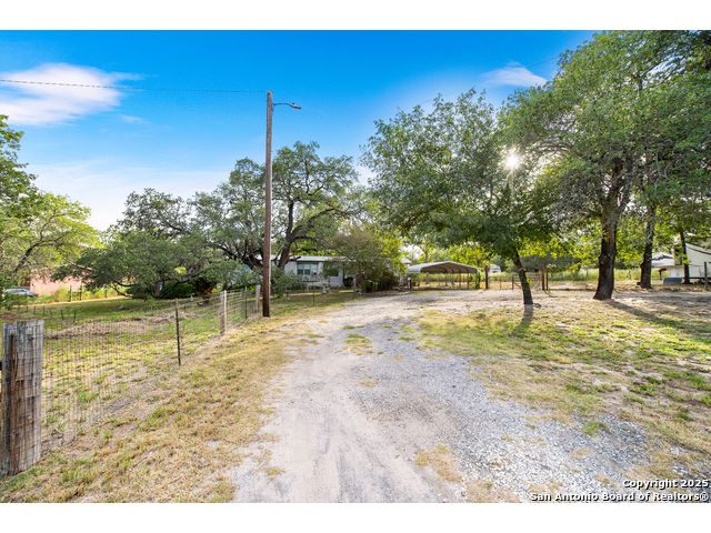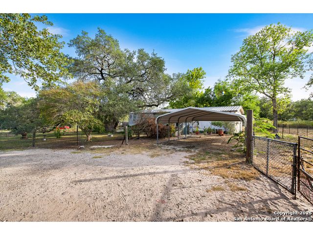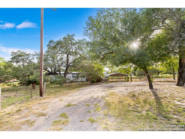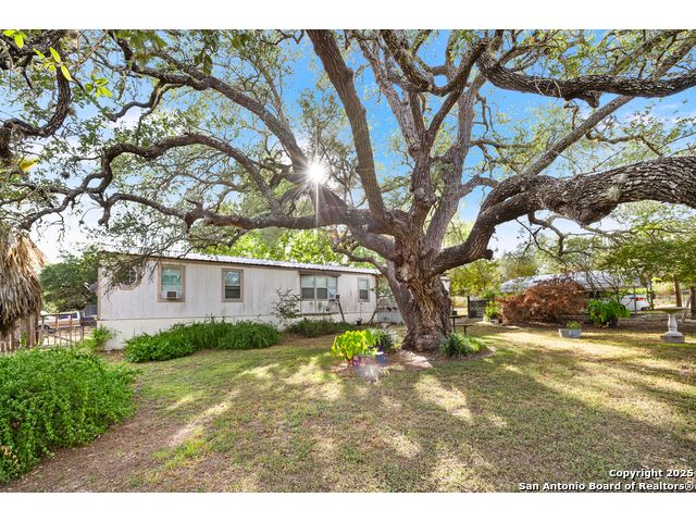 Affordably priced, secluded, on a short cul-de-sac and just over an acre!! Approximately 23 miles south of downtown San Antonio you'll find this great opportunity to own this very charming property and home. This 3/2 Palm Harbor 1368sqft manufactured home has a well sized carport very close to the front door and also has a spacious backyard suitable for an above-ground pool. The property is fenced all the way around and has 2 storage sheds. The home is adorned by an enormous oak tree in the front yard that provides shade to the home, amongst many other mature trees. The front and back yard are perfect for hosting large outdoor gatherings, gardening or just relaxing in the shade. This home just feels BIG with the open layout and has plenty of storage space in the pantry and cabinets throughout. Do yourself or your family a favor and come see this home today!!