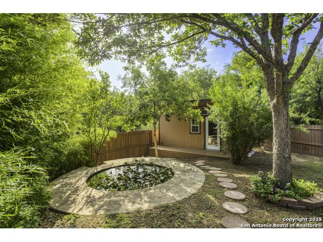 This exceptional multi generational one-story home offers the perfect blend of comfortable living and unique possible income potential on a private quarter-acre lot with no rear neighbors. The main residence features two bedrooms and two bathrooms, highlighted by high ceiling in the living room with a cozy fireplace and an open concept kitchen that flows into the dining and living area. Throughout the home, you'll find ceramic tile flooring, ceiling fans in both bedrooms, and practical amenities including a walk-in shower in the hallway bath and stackable washer/dryer. The primary suite has dual closets and a convenient shower/tub combination. What truly sets this property apart are the two casitas 12x10 each featuring a private bedroom with shower and full bathroom facilities also, window A/C unit perfect for guests, rental income, or multi-generational living. Additional features include an oversized one-car garage, 8x8 storage shed, tranquil koi pond, several mature fruit trees, huge covered metal patio, and recent upgrades including a newer HVAC system and water heater, all situated on a beautifully landscaped lot that offers both privacy and endless possibilities.