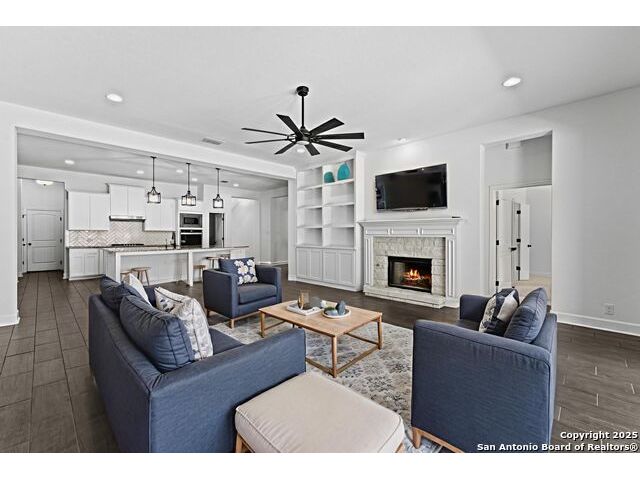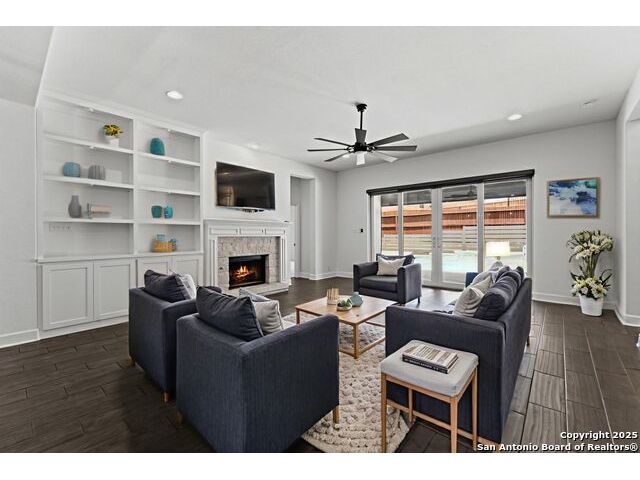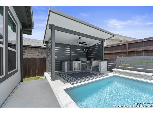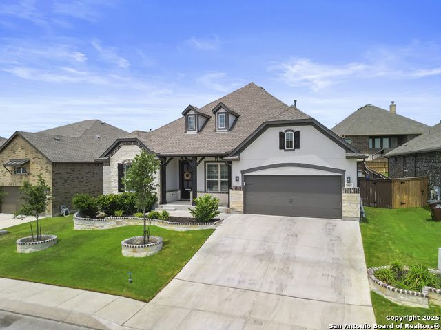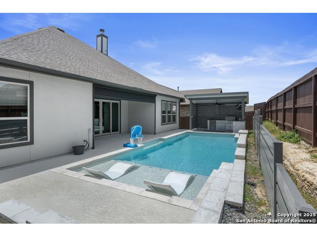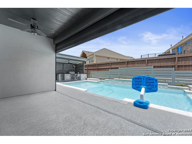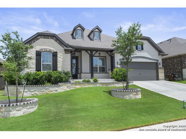 OPEN HOUSE this Friday evening 11/14 from 5:00-7:00PM!! Welcome to 29007 Alldell Way, a beautifully designed one-story home located in the gated community of Kinder Ranch. With 4 spacious bedrooms and 3.5 bathrooms, this home offers a comfortable and open layout with high ceilings, abundant natural light, and thoughtful upgrades throughout. From the lush front landscaping and inviting front porch to the elegant front office with French doors and formal dining room, the home strikes a perfect balance between style and function. The large kitchen features a generous island, ample cabinet space, and flows seamlessly into the living area, where a cozy fireplace adds a warm touch. The primary suite includes a stunning bathroom with a soaking tub, walk-in shower, and separate vanities. Step outside to enjoy your own backyard retreat-complete with a luxurious pool, sun ledge with bubblers and a waterfall, built-in lounge seating, pool heater and chiller, and a drop shade for added patio privacy. Additional highlights include upgraded window treatments, smart thermostat, two overhead storage racks in the garage, a widened driveway, and a 3-car tandem garage. Residents also have the option to access the Kinder Ranch community pool.This home combines comfort, privacy, and elegant outdoor living-ready to enjoy from day one!